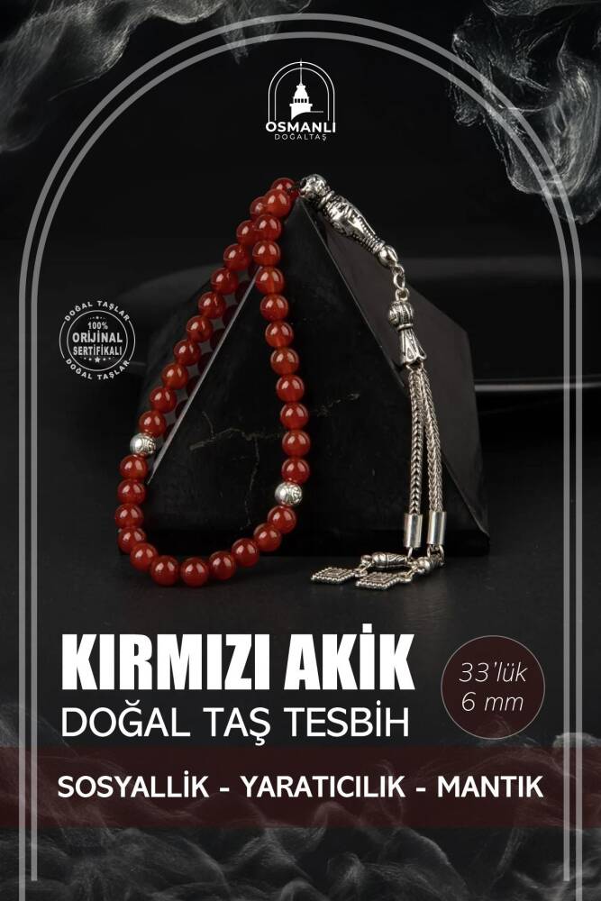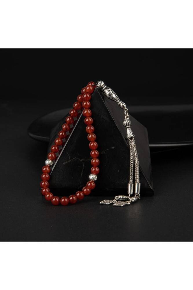 Kırmızı Akik Doğal Taş Tesbih 33lük - 6mm - 3