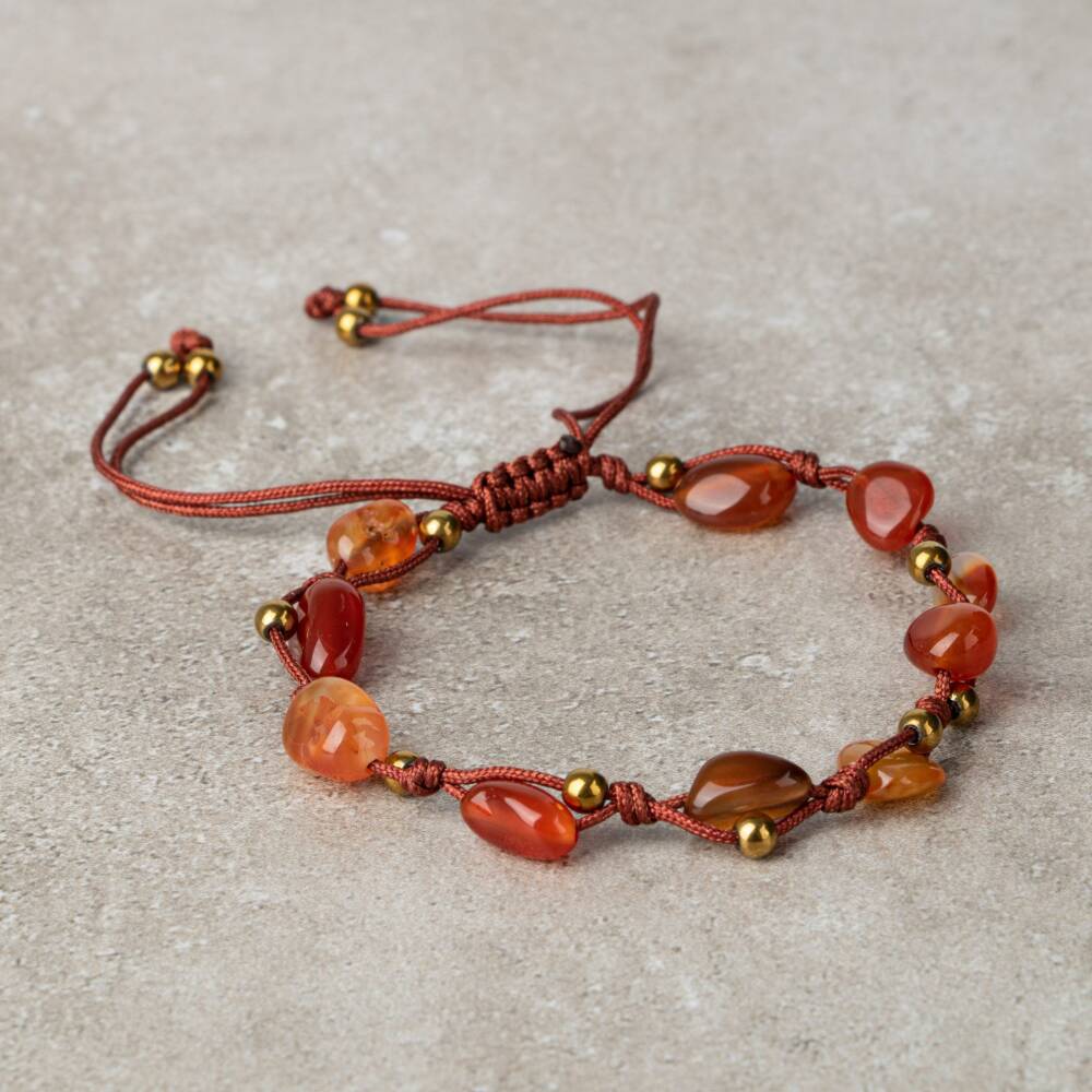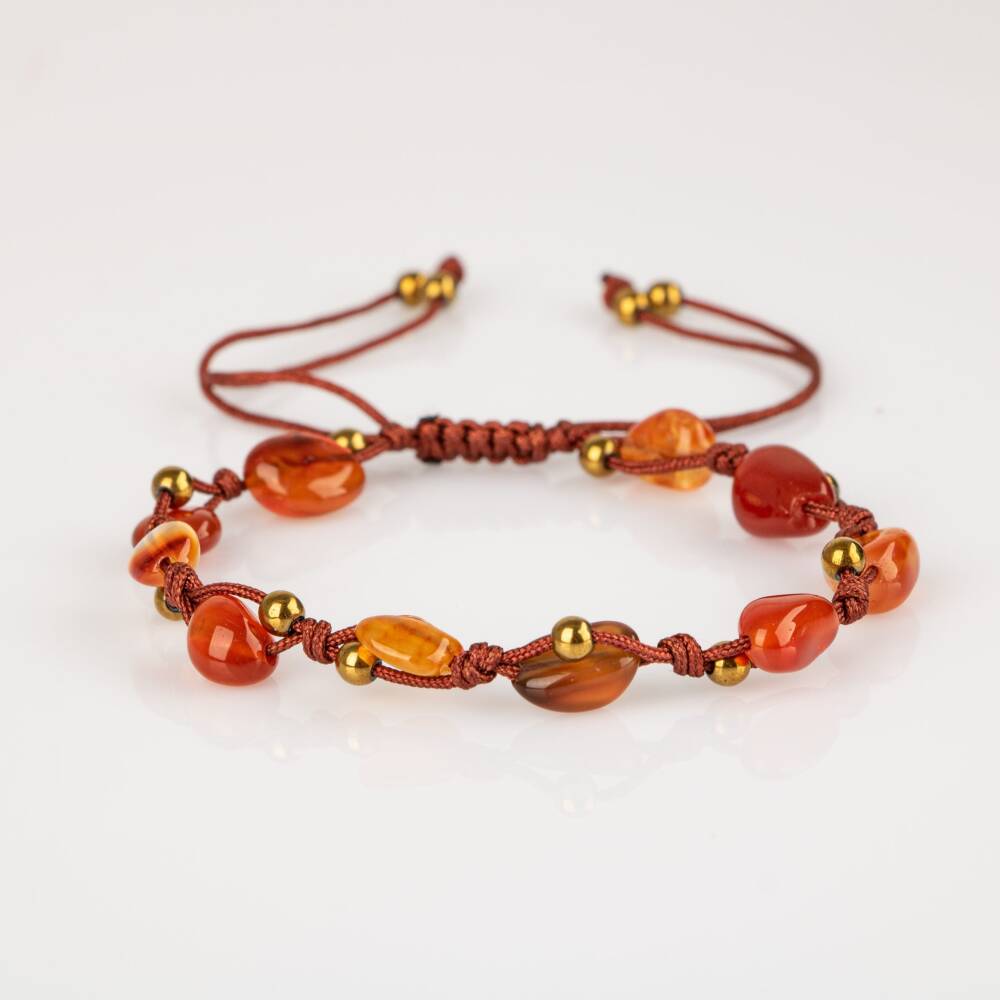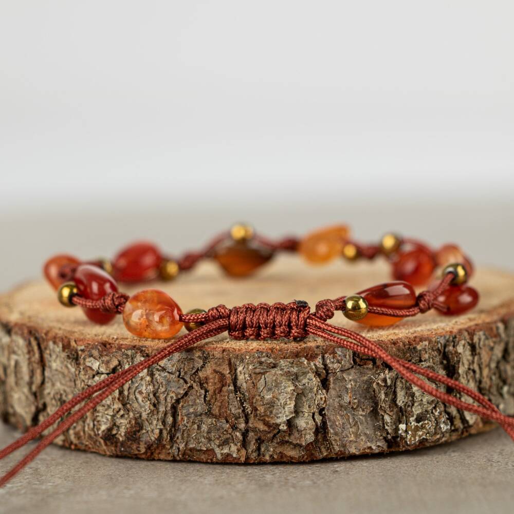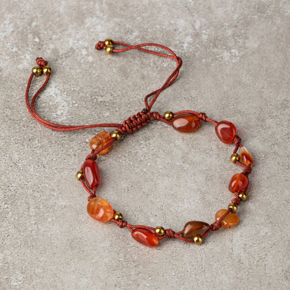 Kırmızı Akik Natürel Kesim Doğal Taş Makrome Bileklik