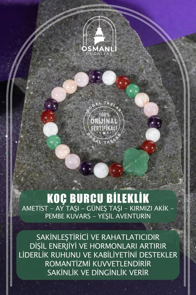 TÜM TAŞLARIMIZ SERTİFİKALI ve %100 ORJİNAL GERÇEK DOĞAL TAŞTIR. Doğal taş takılarının bu eşsiz güzelliği ve faydalarıyla müşterilerimize en kaliteli ve en özel takıları sunuyoruz. Her bir takı, tasarımcılarımız tarafından özenle hazırlanmış, doğal taşların renkleri ve enerjileri ile birlikte, size en uygun olanı seçmenizi sağlar. Doğal taş takılarımız, herhangi bir moda stiline mükemmel bir şekilde uyum sağlar. Aynı zamanda doğanın eşsiz güzelliklerini keşfetmek isteyenler için de harika bir seçenek sunarlar. Kendinizi özel hissetmek istediğinizde, doğal taş takılarımız sizin için mükemmel bir seçenek olacaktır. Ürün İçeriğindeki Taşlar Aşağıda Listelenmiştir. Ametist Taşı Özellikleri: Bağışıklığı yükseltir, sakinleştirici ve rahatlatıcıdır, uyku problemlerine giderir ve yoğun duygu ataklarını önler. Ay Taşı Özellikleri: Her kadında olması gereken başlıca taştır. Kadın taşıdır. Kadınsal rahatsızlıklara iyi gelir. Kadınsal, dişil enerjiyi ve hormonları artırır, teşvik eder. Güneş Taşı Özellikleri: Hayırseverliği ve erdemli olmayı aşılar. Hayattan zevk almayı ve keyif almayı artırır. Liderlik ruhunu ve kabiliyetini destekler. Kırmızı Akik Taşı Özellikleri: Sosyalleştirir. Yaratıcılığı, aklı ve mantığı besler. Cesareti artırır, korkuların yenilmesine yardımcı olur. Odaklanmayı artırır. Pozitif enerji verir: Rahatlatır. Stresi Giderir. Pembe Kuvars Taşı Özellikleri: Her kadında olmazsa olmaz olan taşlardandır. Romantizmi kuvvetlendirir. Çiftler arasında aşkı ve tutkuyu artırır. Cilde parlaklık verir, güzelleştirir. Yeşil Aventurin Taşı Özellikleri: Kararsızlığa iyi gelir, kalbi korur, sakinlik ve dinginlik verir, korku ve huzursuzluğu giderir.