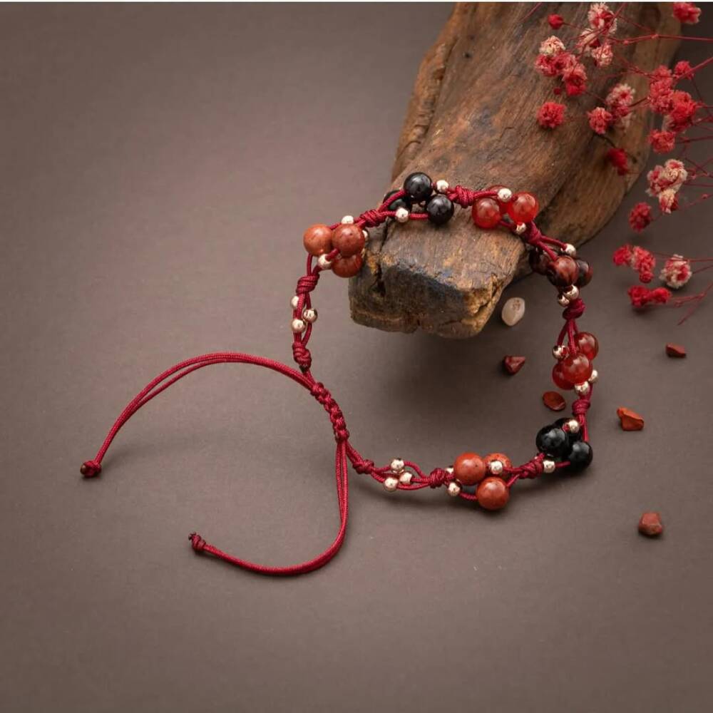 Sertifikalı Kök Çakra Bölgesi Kırmızı Akik, Siyah Turmalin, Granat Lal Doğal Taşlı Makrome Bileklik Bilekliğimiz makrome kapama olduğu için bilek ölçünüze göre ayarlanabilir.; 17- 21 cm arası bileklere uygundur. Daha farklı bir ölçü için sipariş notunuza ölçü yazmayı unutmayın. Tüm ürünlerimiz %100 orijinal doğal taştır. Bütün ürünlerimiz sertifikalı olarak gönderilmektedir. Bileklikte yer alan taşlar; Siyah Turmalin, Kırmızı Akik, Kırmızı Jasper, Kaplan Gözü, Bordo Granat Lal, Hematit Çakra bilekliklerimiz pozitif enerjinin vücuda derinliklerine yayılmasını destekler, negatif enerjinin vücuttan atılmasına yardımcı olurken tıkanık çakraları açmaya yardımcı olur. Kişiyi daha nazik, şefkatli ve sakin olmaya teşvik eder. Hayatta önemli olanın iç huzur ve benlik olduğunu farketmenizi sağlar..