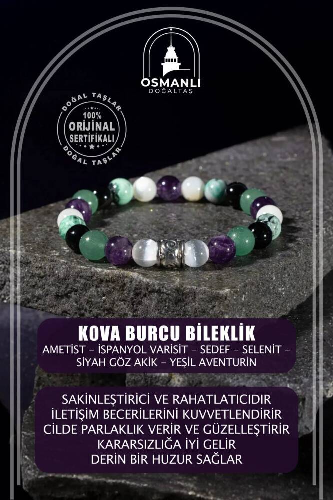 TÜM TAŞLARIMIZ SERTİFİKALI ve %100 ORJİNAL GERÇEK DOĞAL TAŞTIR. Doğal taş takılarının bu eşsiz güzelliği ve faydalarıyla müşterilerimize en kaliteli ve en özel takıları sunuyoruz. Her bir takı, tasarımcılarımız tarafından özenle hazırlanmış, doğal taşların renkleri ve enerjileri ile birlikte, size en uygun olanı seçmenizi sağlar. Doğal taş takılarımız, herhangi bir moda stiline mükemmel bir şekilde uyum sağlar. Aynı zamanda doğanın eşsiz güzelliklerini keşfetmek isteyenler için de harika bir seçenek sunarlar. Kendinizi özel hissetmek istediğinizde, doğal taş takılarımız sizin için mükemmel bir seçenek olacaktır. Ürün İçeriğindeki Taşlar Aşağıda Listelenmiştir. Ametist Taşı Özellikleri: Bağışıklığı yükseltir, sakinleştirici ve rahatlatıcıdır, uyku problemlerine giderir ve yoğun duygu ataklarını önler. İspanyol Varisit Taşı Özellikleri: İletişim becerilerini kuvvetlendirir. Anlamayı destekler ve kuvvetlendirir. Hastalıkları engeller ve tedavi eder. Damarların ve cildin esnekliğini artırır. Sedef Taşı Özellikleri: Cilde parlaklık verir ve güzelleştirir. Duygusal kriz ve kaygıları giderir. Refah ve bereketi çeker. Kendini ifade etme gücünü yükseltir. Selenit Taşı Özellikleri: Zihin açıklığı verir. Derin bir huzur sağlar. Sorgulamayı, düşünmeyi ve anlamayı destekler. Siyah Göz Akik Taşı Özellikleri: Sosyalleştirir. Yaratıcılığı, aklı ve mantığı besler. Cesareti artırır, korkuların yenilmesine yardımcı olur. Odaklanmayı artırır. Pozitif enerji verir: Rahatlatır. Stresi Giderir. Yeşil Aventurin Taşı Özellikleri: Kararsızlığa iyi gelir, kalbi korur, sakinlik ve dinginlik verir, korku ve huzursuzluğu giderir. BİLGİ: Doğal taşların faydaları günümüzde birçok kullanıcıdan alınan geri dönüşlerde defeatle gözlemlenmiştir. Kan dolaşımına ve sindirim sistemine bir ilaç gibi dahil edilememesi; enerjileri ve kullanımı açısından sunacağı faydaya inanma ön koşulu gerektirmesiyle kesinlikle bir ilaç mahiyetinde değildir. Fakat geçmişten günümüze Biruni ve İbn-i Sina gibi büyük tıp alimleri doğal taşlar üzerinde düşünmüş, araştırmış ve geliştirdikleri tedavi yöntemlerine dahil etmişlerdir.Doğal taşların faydaları bilimsel bir deney-gözlem sürecinden ziyade geçmişte yaşayan toplumların ve tıp alimlerinin kullanım amaçlarına istinaden belirlenmekte, tespit edilmektedir. Bil biliyoruz ki şifa sadece Allah’tandır. Nereden ve nasıl geleceği belli olmaz. KAYNAK: Osmanlı Doğaltaş taşların özellikleri ve kullanım bilgileri için aşağıdaki kaynaklardan faydalanmaktadır.Walter Schumann, Gemstones Of The World (Sterling Yayın Evi, 17. Baskı).Judy Hall, Değerli Taşlar Kitabı (Alfa Basım Yayın, 3. Basım, 2021)Muhammed Bin Mahmud-ı Şirvani, Tuhfe-i Muradi. Hazırlayan: Mustafa Argunşah (Türk Dil Kurumu, 1999)Patrick Voillot, Elmaslar ve Değerli Taşlar (Yapı Kredi Yayınları, 1. Baskı, 2013)
