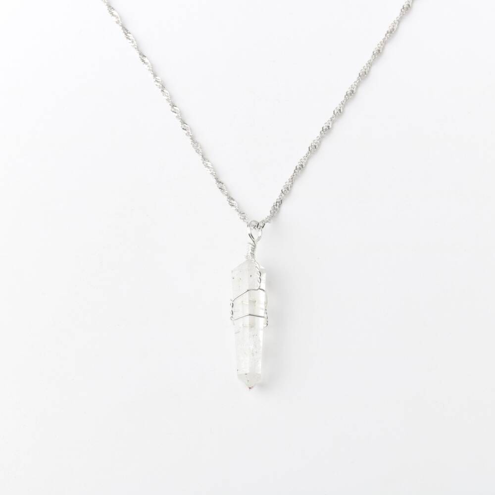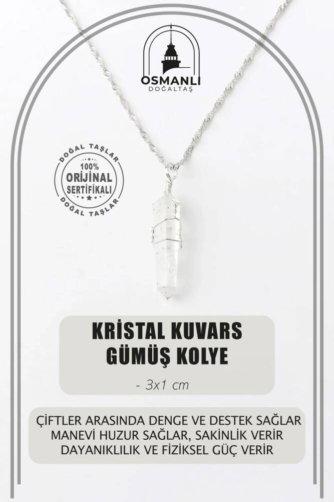 Kristal Kuvars Doğal Taş Kolye Ucu 3x1 cm, Gümüş Zincir