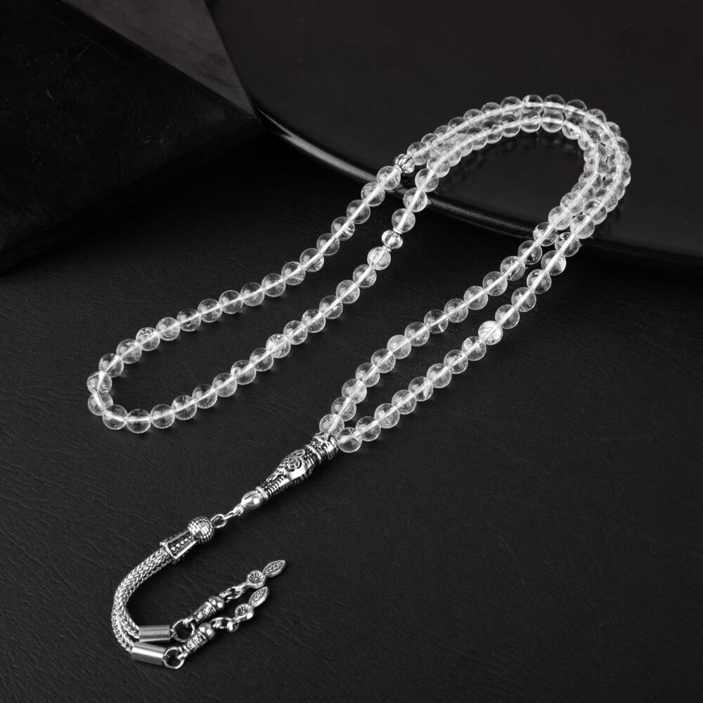 Kristal Kuvars Doğal Taş Tesbih 99luk - 6mm - 3