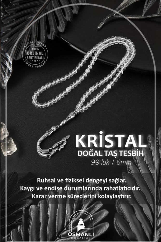 Kristal Kuvars Doğal Taş Tesbih 99luk - 6mm - 1