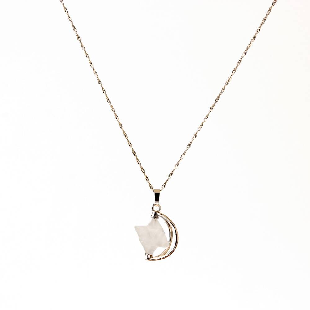 Kristal Kuvars Doğal Taş Yıldızlı Kolye, Gümüş Zincir