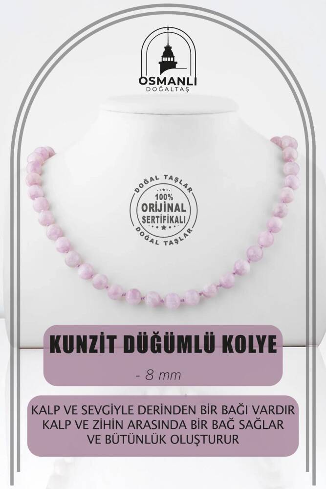 Kunzit 8 mm Düğümlü Doğal Taş Kolye