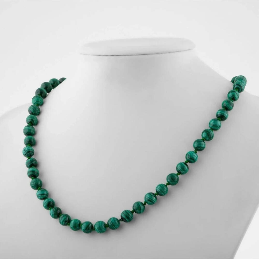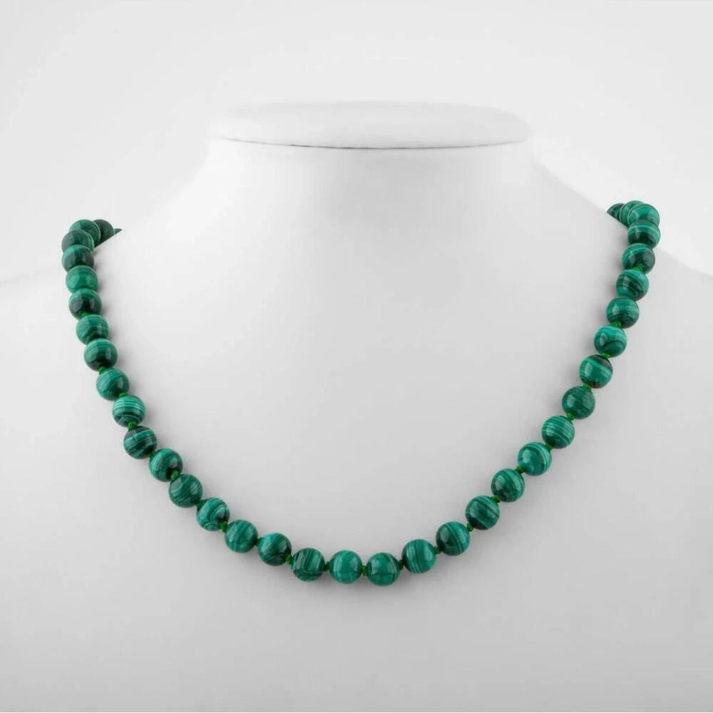 Malakit 8 mm Düğümlü Doğal Taş Kolye - 1