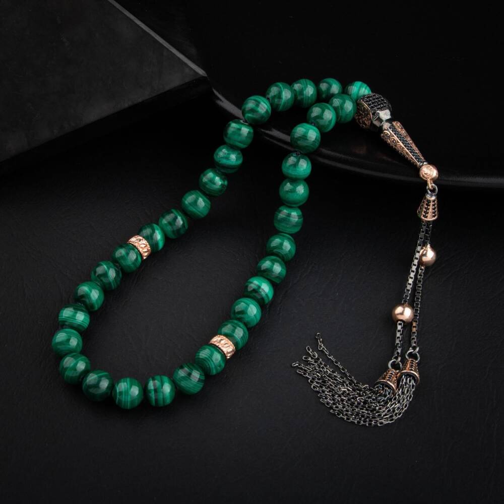 Malakit Doğal Taş 8mm Gümüş Tesbih - 1
