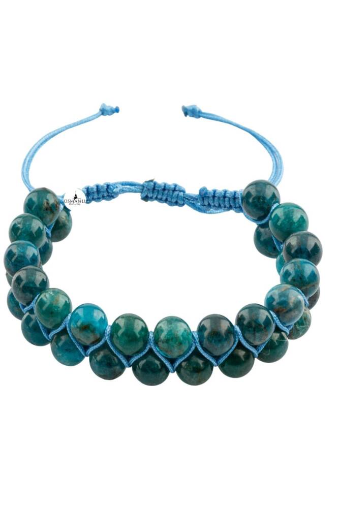 Mavi Apatit 8mm Çift Sıra Makrome Doğal Taş Bileklik