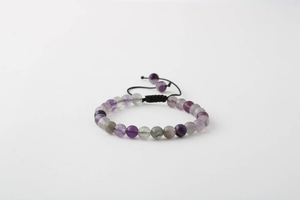 Mor Florit 6mm Merdiven Kapama Doğal Taş Bileklik - 1