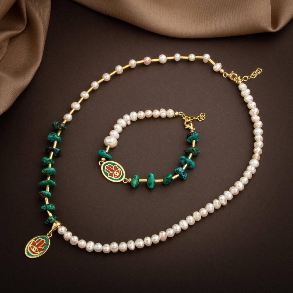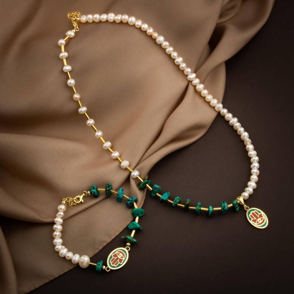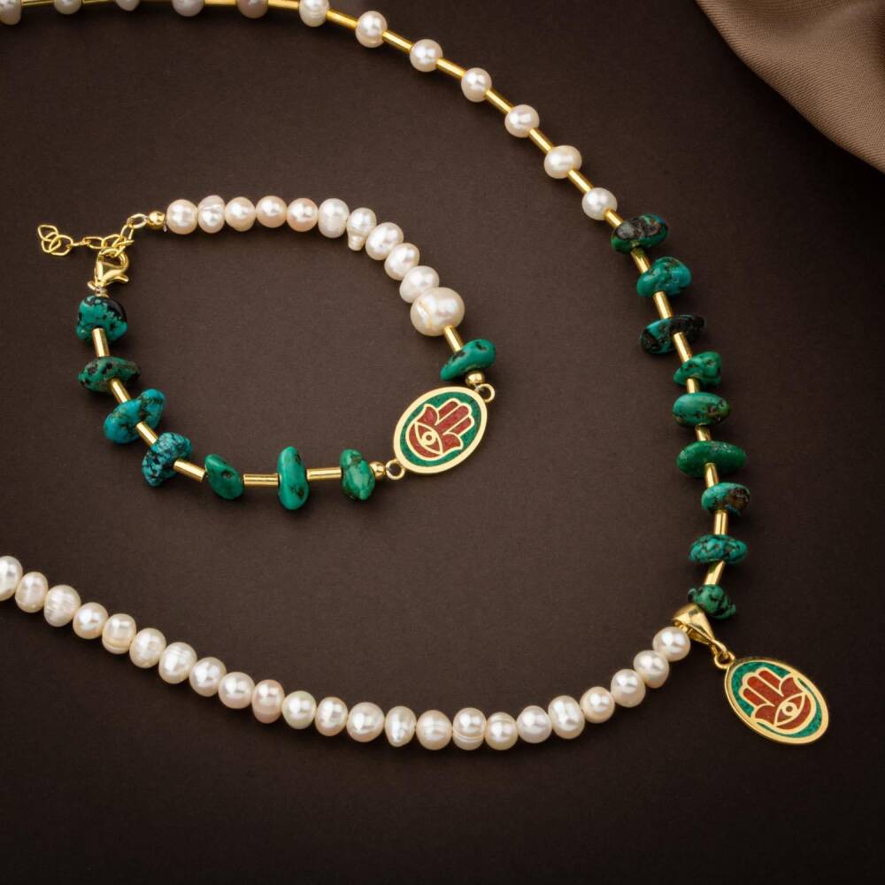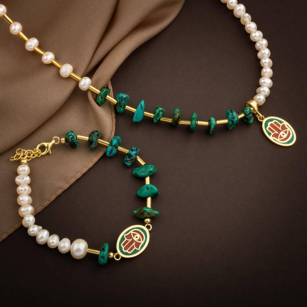 İnci ÖzellikleriDişil enerji verir. Hem ruhsal hem de bedenen hafiflik verir. Kaygıyı, gerginliği ve kötü düşünceleri engeller. Turkuaz (Firuze) Taşı ÖzellikleriNazara karşı çok etkilidir. Romantizmi artırır. Olumsuz enerjileri dağıtır. Hava kirliliğine ve çevresel kirliliklere karşı koruma sağlar. Psikolojik yorgunluğu giderir. -----------------
