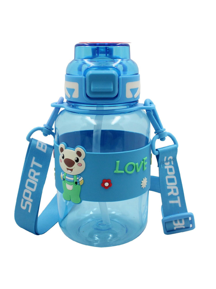 Noki Kids Su Matarası Mavi Petg Pipetli Kapak Ayıcık Silikon Kemerli Askılı 800 Ml