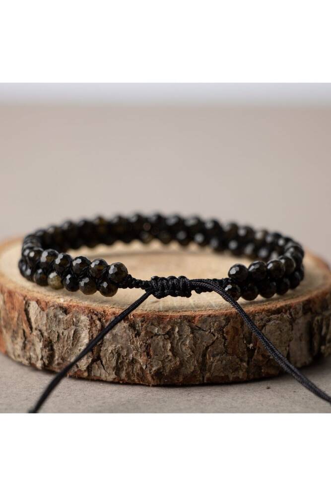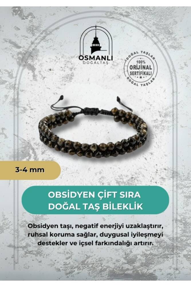 Obsidyen 3-4mm Çift Sıra Doğal Taş Bileklik - 1