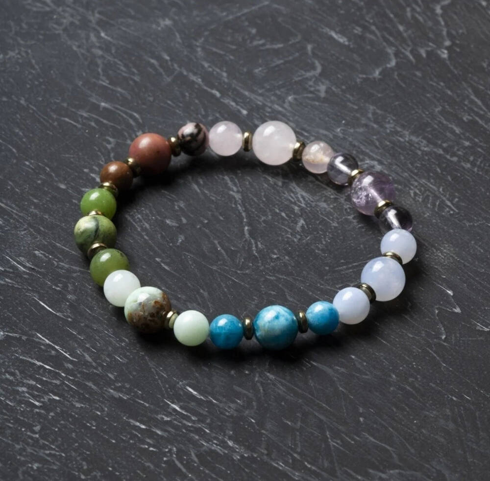 Boğa burcunun kararlı, sabırlı ve huzur veren enerjisini taşıyan bu özel bileklik; Ametrin, Pembe Kuvars, Rodonit, Yeşim, Krizopras, Apatit ve Kalsedon taşlarının zarif birleşimiyle oluşturulmuştur. Boğa burcunun güçlü, sakin ve dengeli yapısını desteklemek, yaşamınıza bolluk ve huzur getirmek için özenle tasarlanmıştır. Ametrin: Ruhsal dengeyi destekler, zihinsel netlik sağlar. Pembe Kuvars: Kalp çakrasını harekete geçirir, sevgi enerjisini yükseltir. Rodonit: Duygusal yaraları iyileştirir, içsel huzur verir. Yeşim: Şans ve bolluk getirir, negatif enerjileri uzaklaştırır. Krizopras: Umudu artırır, huzur ve neşe verir. Apatit: Enerjiyi yükselterek yaratıcılığı teşvik eder. Kalsedon: Stresi azaltır, sakinleştirici etkisiyle huzur sağlar. Osmanlı Doğal Taş kalitesiyle hazırlanan bilekliğiniz, taşların orijinalliğini belgeleyen sertifikası ve şık hediye kutusuyla birlikte gönderilir. Boğa burcu sevdiklerinize veya kendinize huzur dolu, şık ve anlamlı bir hediye sunun.