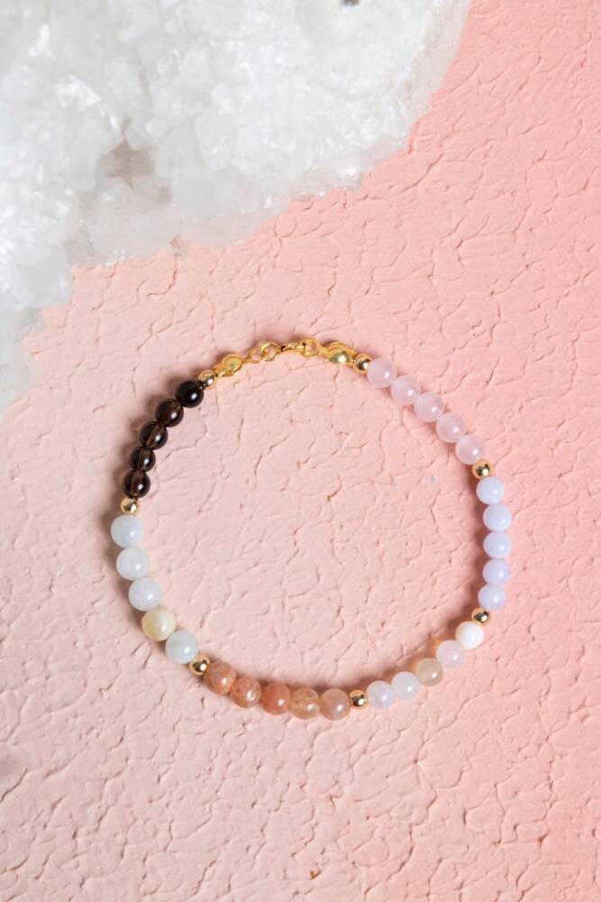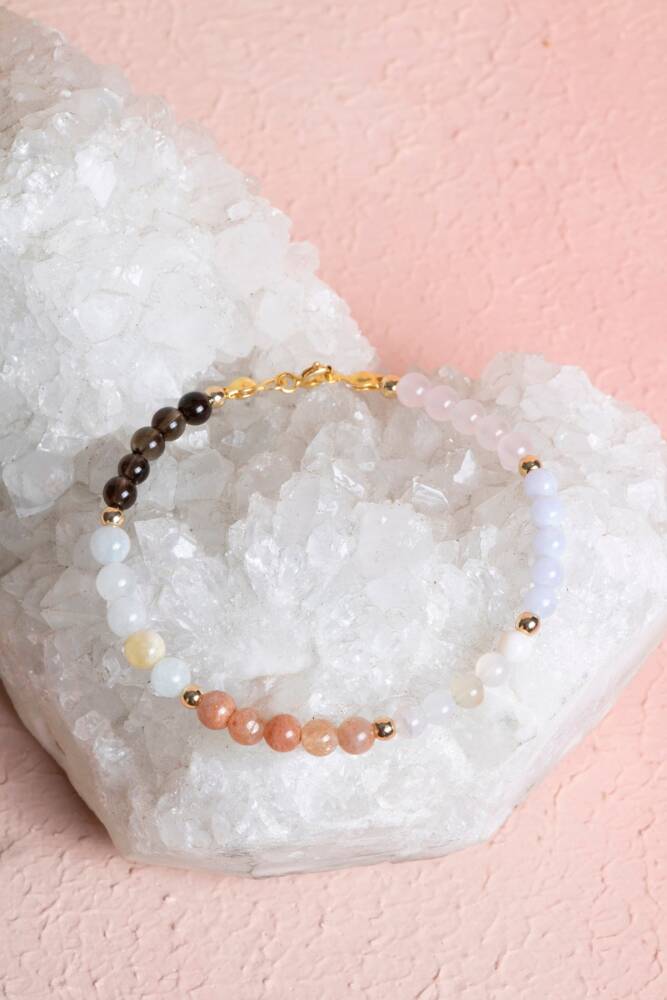 Koç burcunun cesur, enerjik ve tutkulu karakterini yansıtan bu özel bileklik, Pembe Kuvars, Ametist, Kan Taşı, Sitrin, Aventurin, Güneş Taşı ve Jasper taşlarının güçlü enerjileriyle tasarlandı. Koç burcunun güçlü, enerjik ve lider özelliklerini desteklemek, yaşamınıza pozitif titreşimleri çekmek için özenle bir araya getirildi.