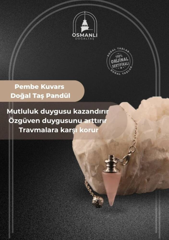 Sevgi taşı olarak da bilinen pembe kuvars pandül, duygusal iyileşme ve kalp çakrasını güçlendirme amacıyla enerji çalışmalarında sıklıkla kullanılır. İç huzurunuzu destekleyerek stres ve kaygıyı azaltan bu özel pandül, aynı zamanda ilişkilerinizdeki uyumu artırmaya yardımcı olur. Zarif ve sade görünümüyle günlük yaşamda da rahatlıkla kullanabileceğiniz pembe kuvars pandül, doğal taşın enerjisini yaşam alanlarınıza taşır. Meditasyon, enerji dengeleme ve şifa çalışmalarınızda ideal bir rehberdir. Osmanlı Doğal Taş kalitesi ve güvencesiyle tamamen doğal pembe kuvars taşından üretilen pandülünüz, şık zinciri, özel kutusu ve taşınızın orijinalliğini belgeleyen sertifikasıyla sizlere sunulur. Sevdiklerinize veya kendinize huzur dolu ve anlamlı bir hediye verin.