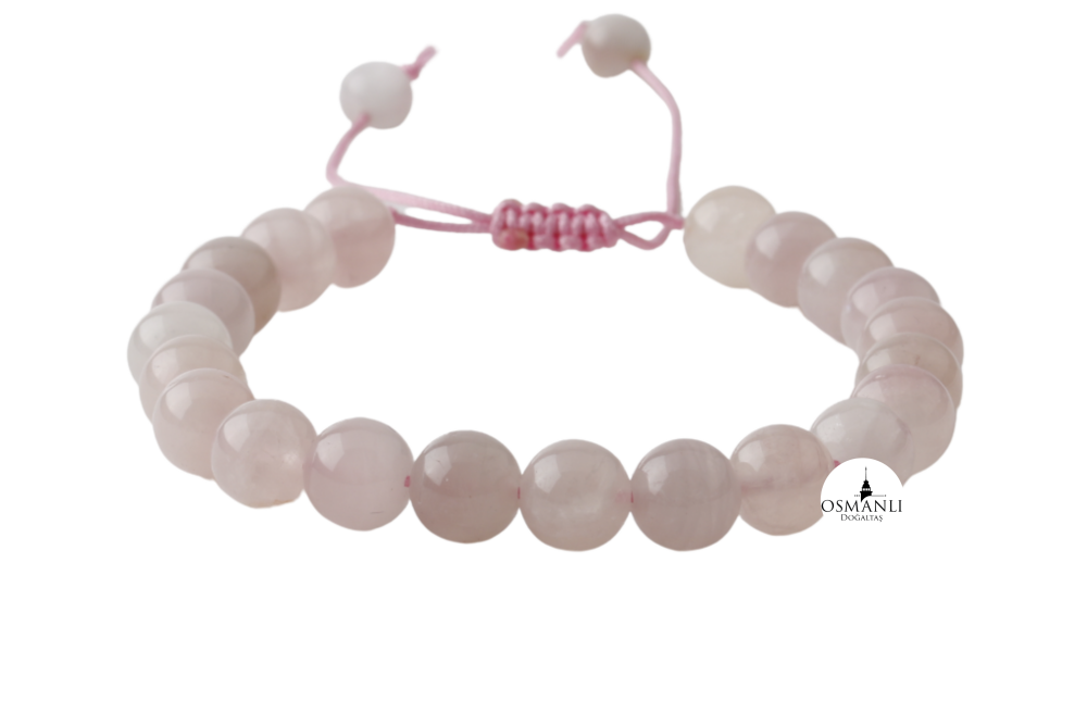 Pembe Kuvars 8mm Merdiven Kapama Doğal Taş Bileklik - 1