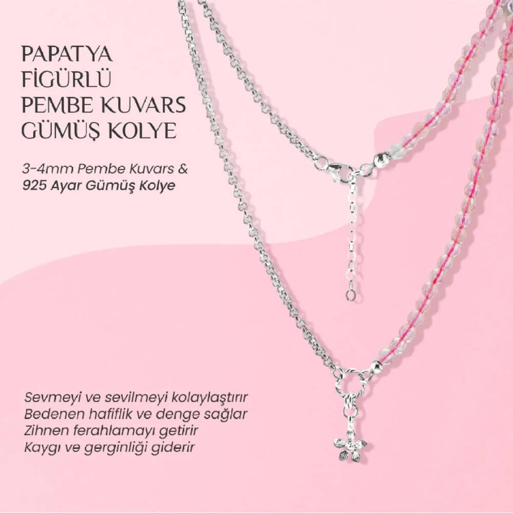 TÜM TAŞLARIMIZ SERTİFİKALI ve %100 ORJİNAL GERÇEK DOĞAL TAŞTIR. Doğal taş takılarının bu eşsiz güzelliği ve faydalarıyla müşterilerimize en kaliteli ve en özel takıları sunuyoruz. Ürün İçeriğindeki Taşlar Aşağıda Listelenmiştir. Pembe Kuvars Taşı ÖzellikleriHer kadında olmazsa olmaz olan taşlardandır. Romantizmi kuvvetlendirir. Çiftler arasında aşkı ve tutkuyu artırır. Cilde parlaklık verir, güzelleştirir.