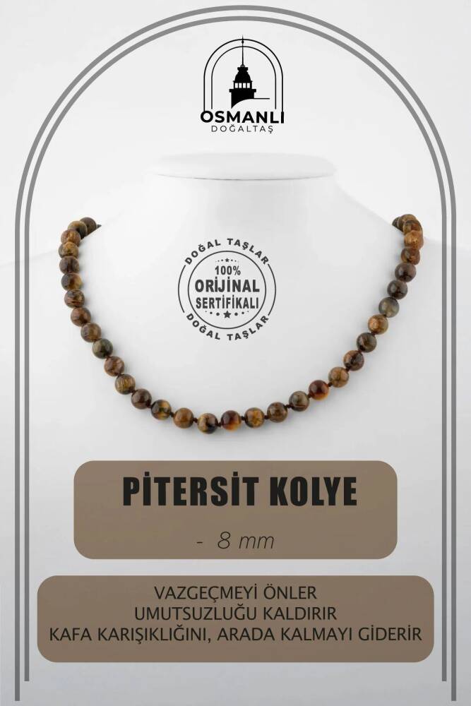 TÜM TAŞLARIMIZ SERTİFİKALI ve %100 ORJİNAL GERÇEK DOĞAL TAŞTIR. Doğal taş takılarının bu eşsiz güzelliği ve faydalarıyla müşterilerimize en kaliteli ve en özel takıları sunuyoruz. Her bir takı, tasarımcılarımız tarafından özenle hazırlanmış, doğal taşların renkleri ve enerjileri ile birlikte, size en uygun olanı seçmenizi sağlar. Doğal taş takılarımız, herhangi bir moda stiline mükemmel bir şekilde uyum sağlar. Aynı zamanda doğanın eşsiz güzelliklerini keşfetmek isteyenler için de harika bir seçenek sunarlar. Kendinizi özel hissetmek istediğinizde, doğal taş takılarımız sizin için mükemmel bir seçenek olacaktır. Ürün İçeriğindeki Taşlar Aşağıda Listelenmiştir. Pitersit Taşı Özellikleri: Vazgeçmeyi önler, umutsuzluğu kaldırır. Kafa karışıklığını, arada kalmayı giderir. Baş dönmelerine ve ağrılarına iyi gelir.