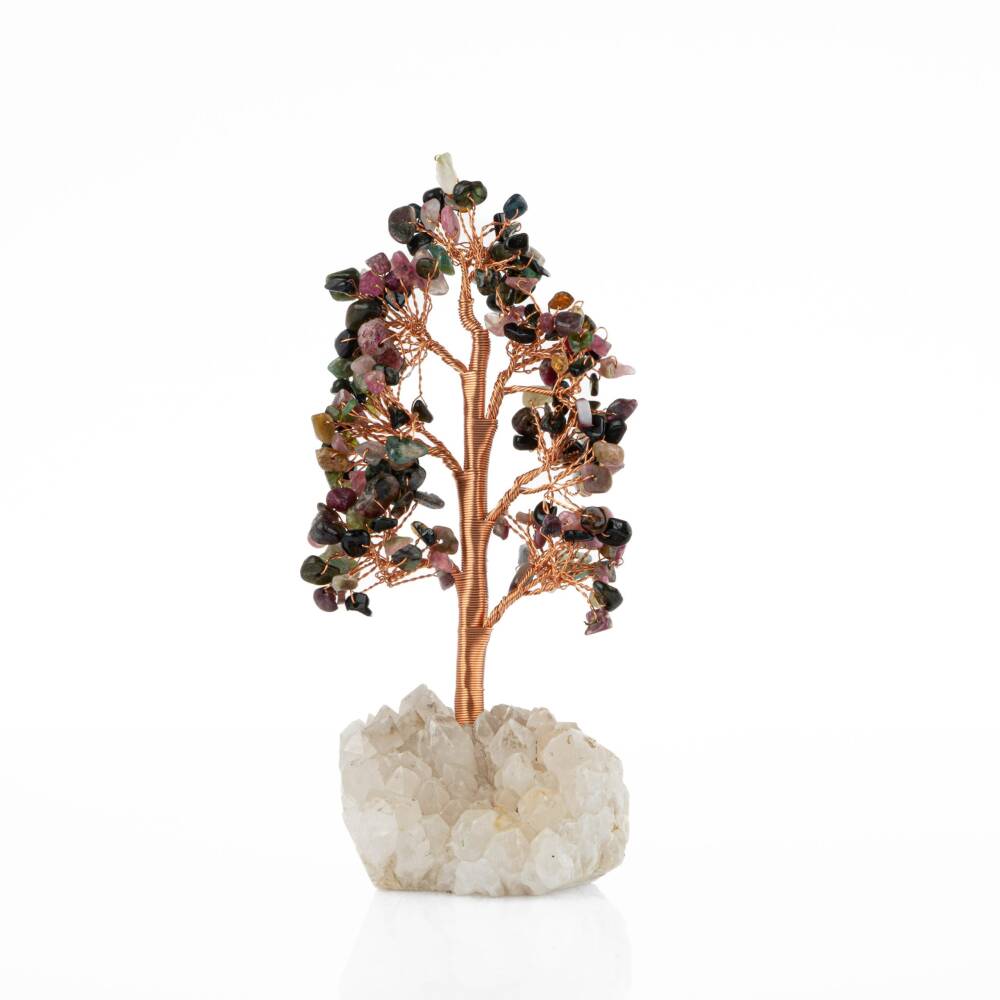 Renkli Turmalin-Kristal Kuvars Doğal Taş Dekoratif Ağaç