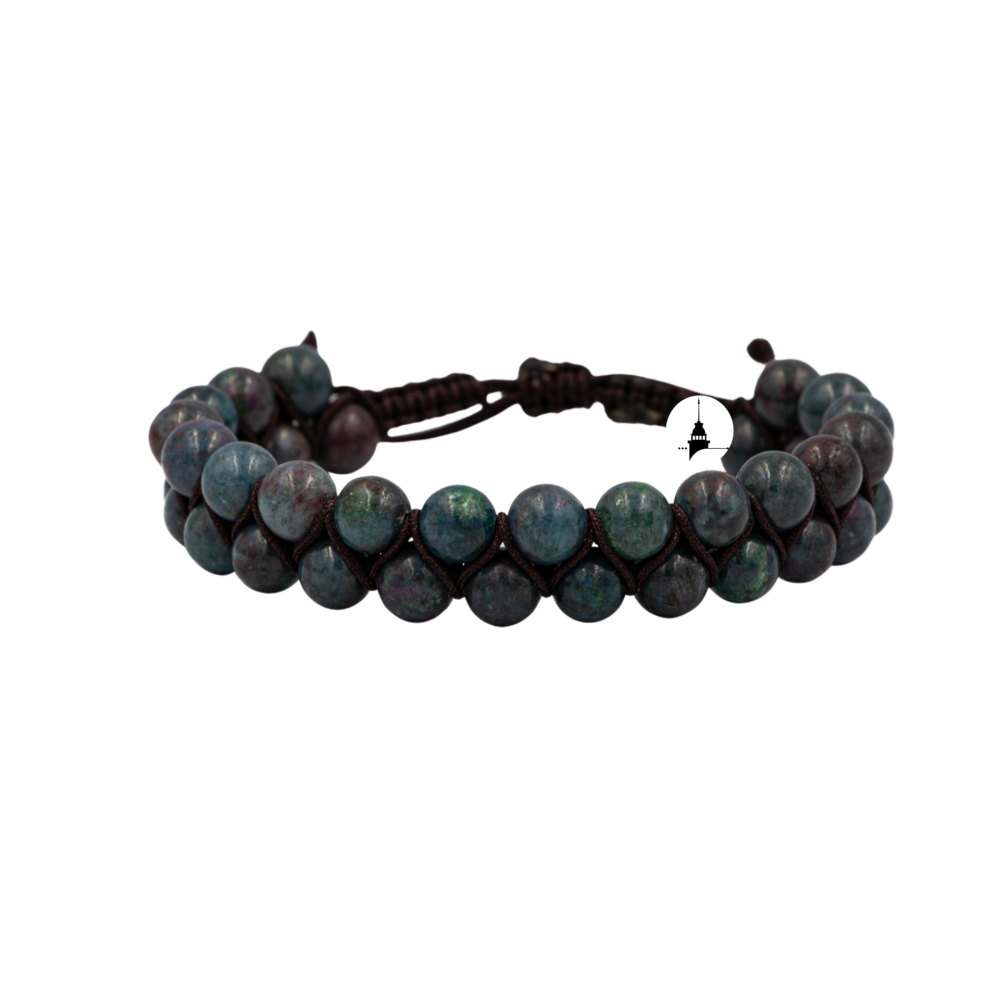 Ruby Kiyanit 6mm Çift Sıra Makrome Doğal Taş Bileklik