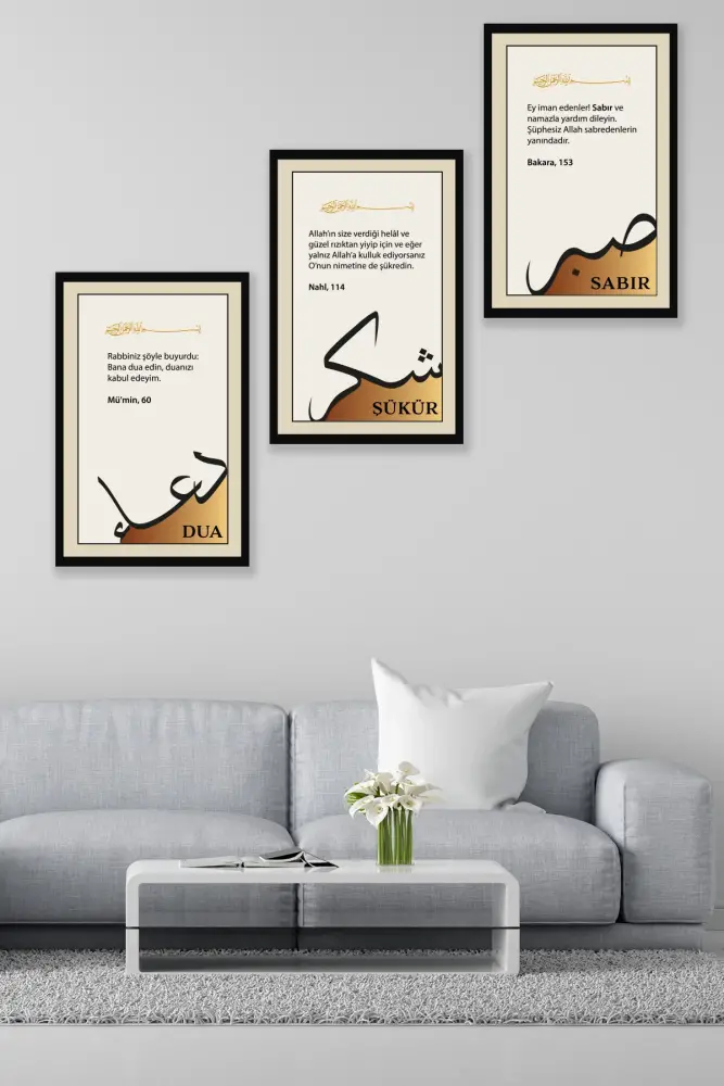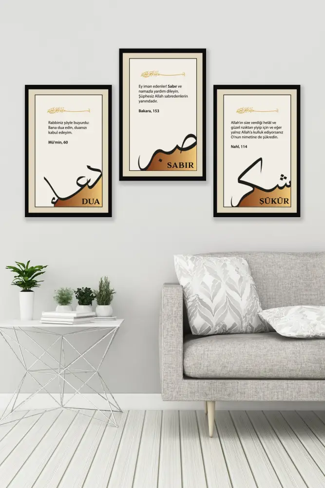 Set İçeriği: 3 adet tablo (Dua, Şükür, Sabır temalı)