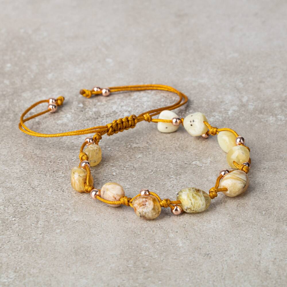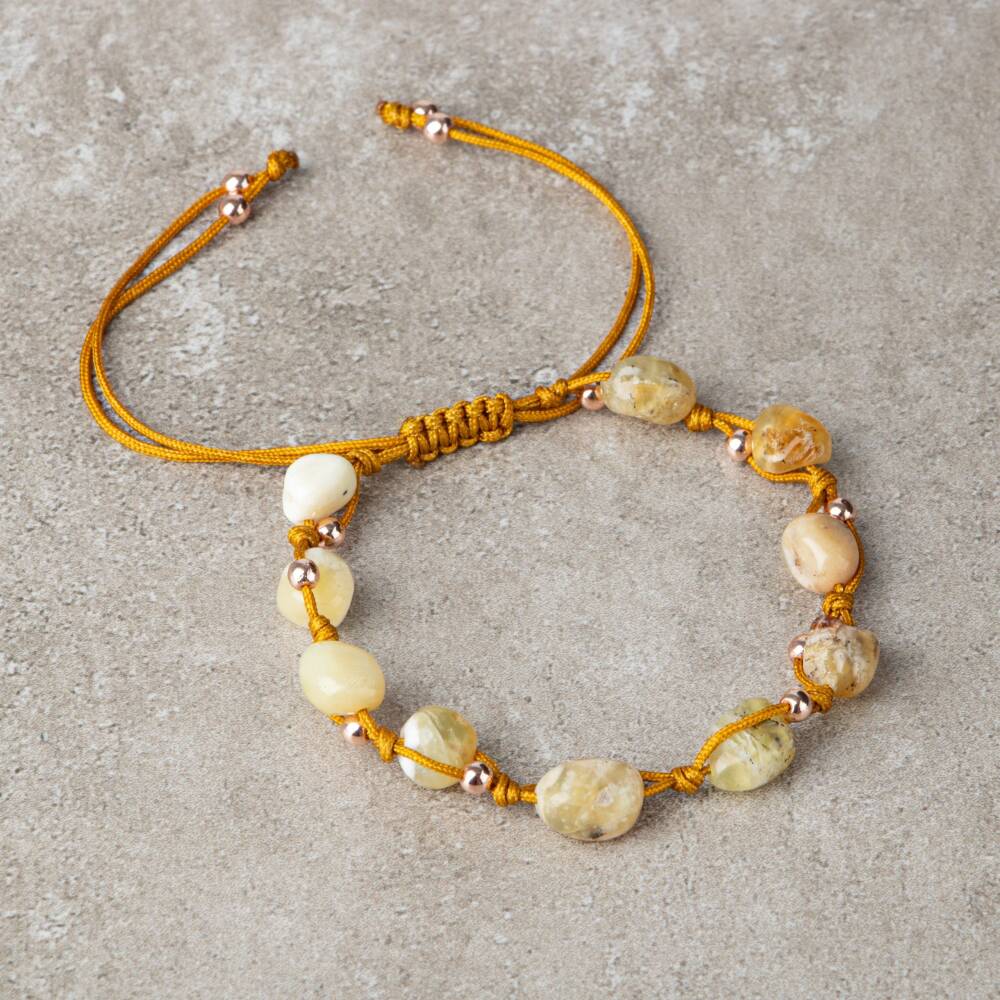 Sarı Kaplan Gözü Natürel Kesim Doğal Taş Makrome Bileklik