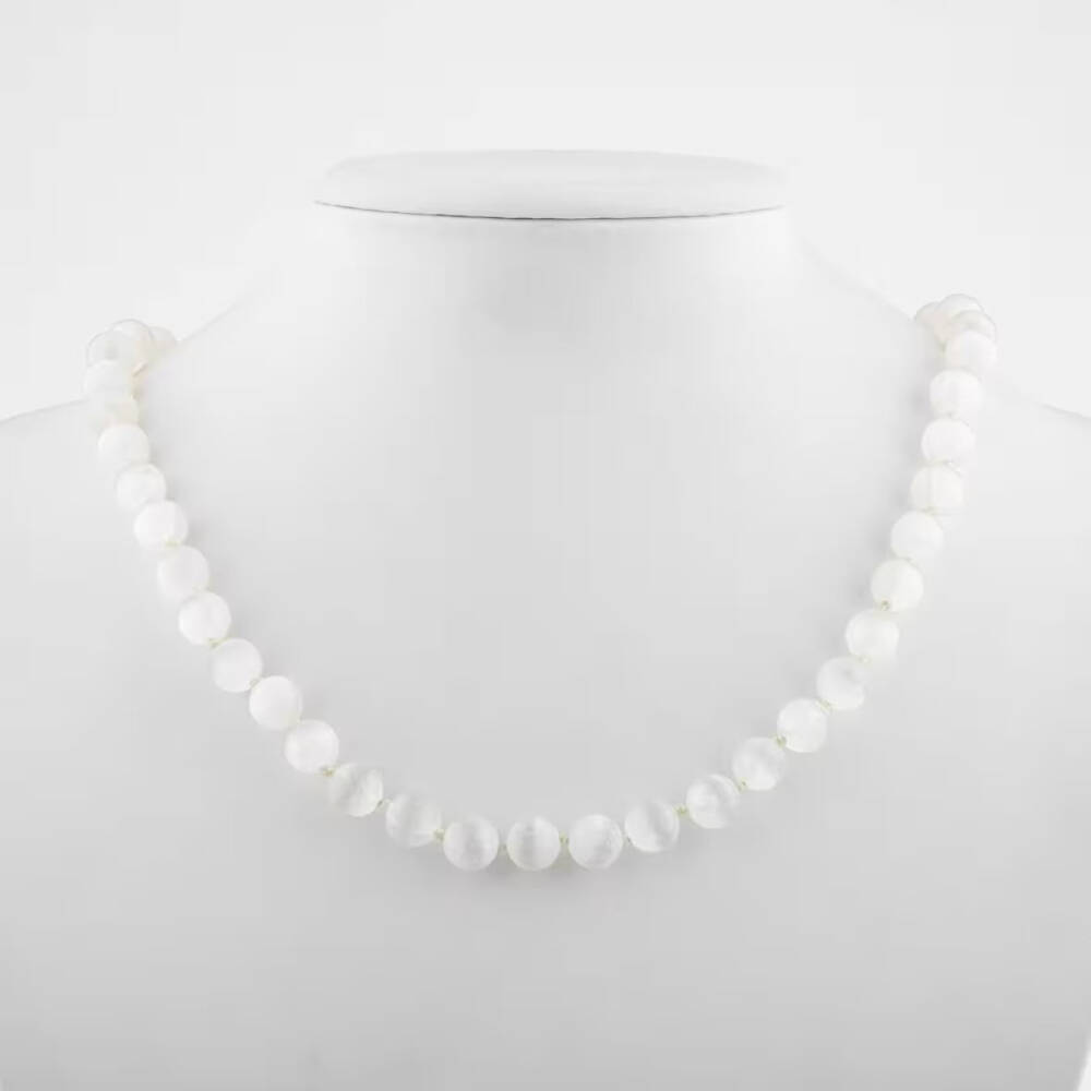 Selenit 8 mm Düğümlü Doğal Taş Kolye - 1