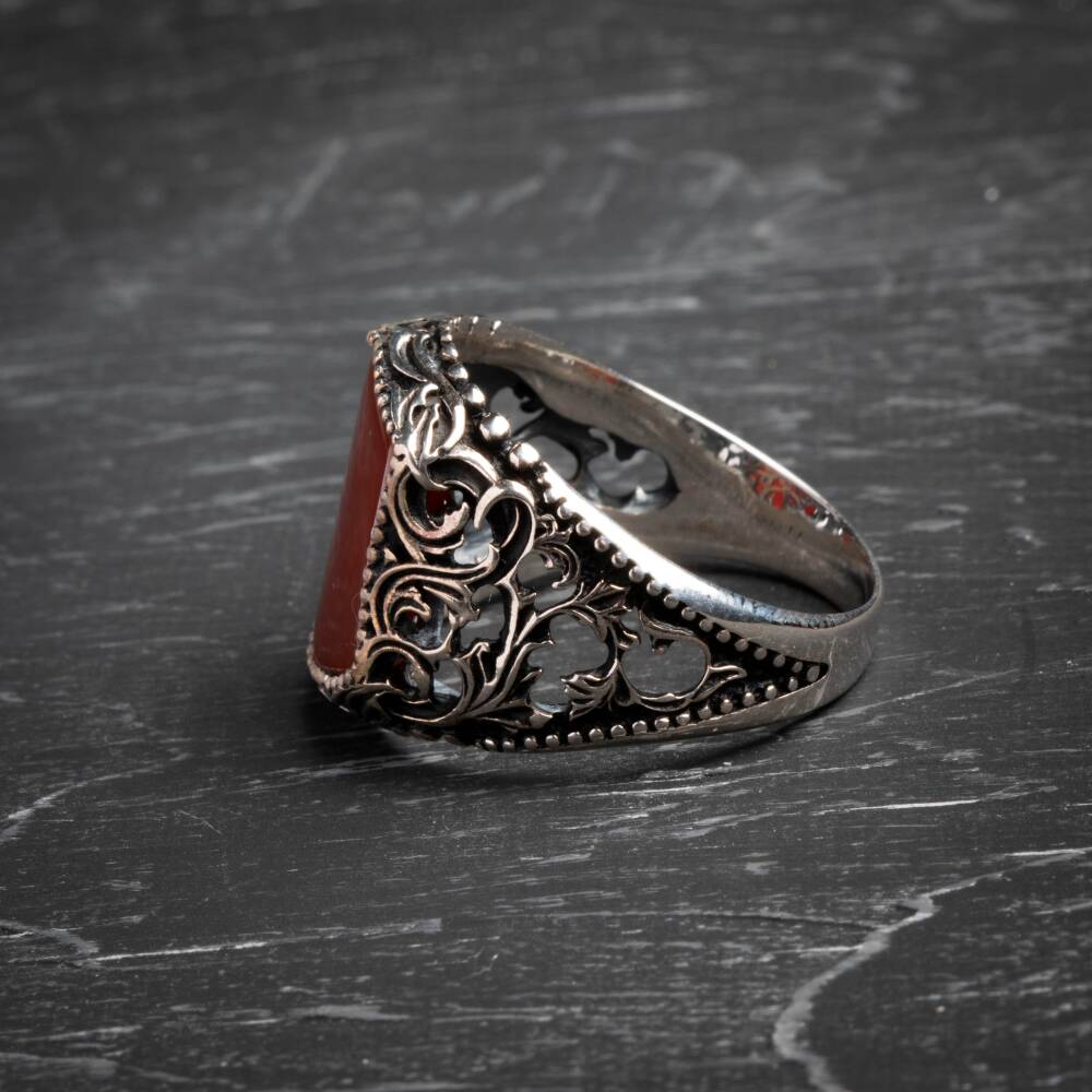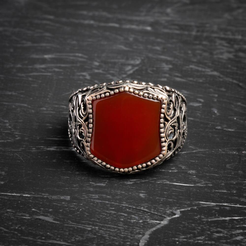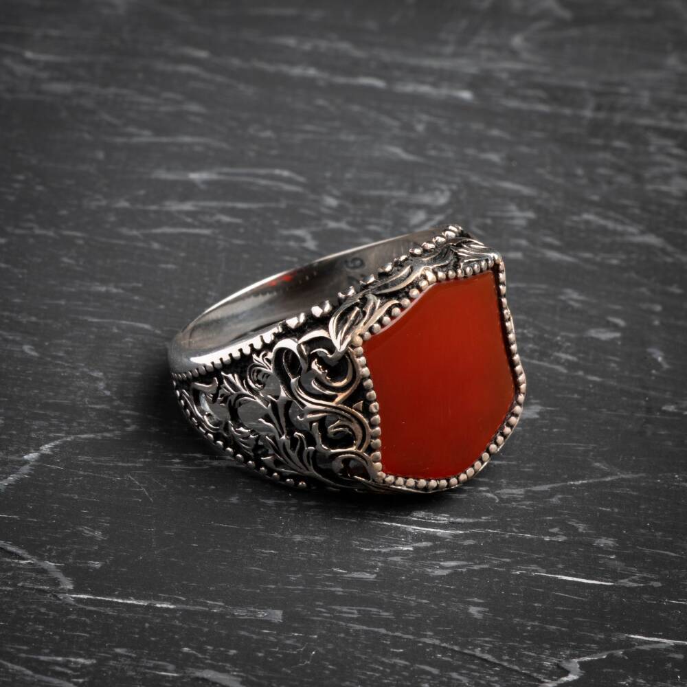 Sertifikalı 925 Ayar El İşlemesi Desenli Akik Yüzük (Erkek) Güç, koruma ve kararlılığın sembolü olan Akik doğal taşının eşsiz enerjisiyle tanışın. Yüzüğümüz, Sertifikalı 925 Ayar Gümüş üzerine usta El İşlemesi Desenler ile bezenmiş olup, hem asil bir duruş hem de ruhsal denge sağlayan güçlü bir aksesuardır. Akik Taşının Gücü ve Yüzüğün Özellikleri Akik (Koruma ve Denge): Akik, güçlü bir koruyucu taştır. Negatif enerjilere karşı kalkan görevi görür, duygusal, fiziksel ve zihinsel dengeyi sağlamaya yardımcı olur. Kararlılığı ve özgüveni destekler. Sertifikalı Güvenilirlik: Yüzüğün taşı sertifikalı olup, orijinalliği ve kalitesi garantilenmiştir. Kullanılan gümüş ise yüksek standartlı 925 Ayar saflığındadır. El İşlemesi Sanat: Yüzük kasası, usta ellerde hayat bulan özel desenli el işlemeleri ile süslenmiştir. Bu detaylar, yüzüğe benzersiz, otantik ve yüksek sanatsal değer katar. Asil ve Erkeksil Tasarım: Akik taşının derin ve doğal renk tonları ile gümüşün asil parlaklığı, güçlü ve karizmatik bir erkek stilini tamamlar. Bu özel yüzük, hem geleneksel el sanatının izlerini taşır hem de modern erkeğin günlük yaşamda aradığı gücü ve dengeyi sunar.
