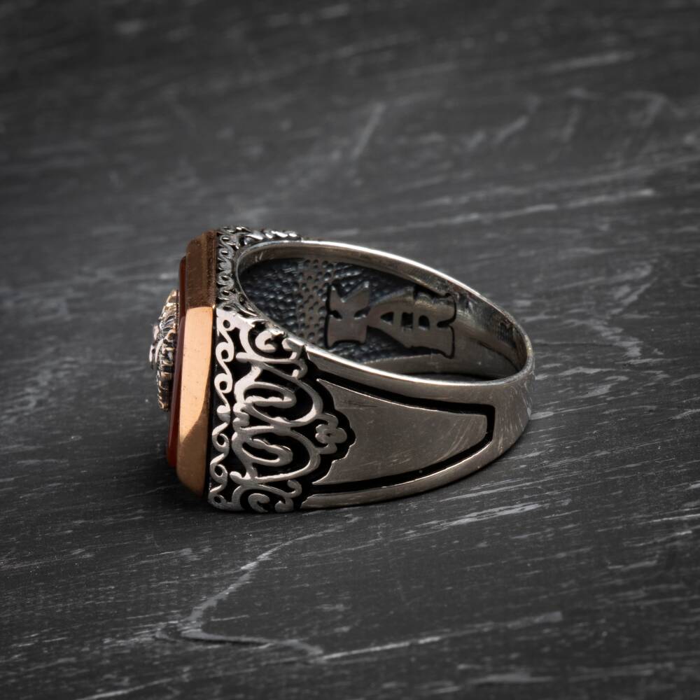 Sertifikalı 925 Ayar Gümüş Osmanlı Tuğra Akik Yüzük (Erkek) Tarihin gücünü, koruma enerjisini ve asil mirasını parmağınızda taşıyın! Akik doğal taşının dengeleyici enerjisi, görkemli Osmanlı Tuğrası motifiyle birleşerek bu özel yüzükte hayat buluyor. Yüzüğümüz, Sertifikalı 925 Ayar Gümüş kullanılarak üretilmiştir ve güçlü bir erkek stilini tamamlamak için idealdir. Akik, Tuğra ve Gümüşün Asil Sinerjisi Akik (Koruma ve Denge): Akik, yüzyıllardır güçlü bir koruyucu ve dengeleyici taş olarak bilinir. Negatif enerjilere karşı kalkan görevi görür, duygusal ve zihinsel kararlılığı destekler. Osmanlı Tuğrası (Tarih ve Güç): Yüzüğün üzerindeki Osmanlı Tuğrası motifi, görkemi, asaleti ve köklü tarihi simgeler. Taşıyana güçlü bir miras ve aidiyet hissi katar. Sertifikalı Güvenilirlik: Yüzüğün taşı sertifikalı olup, orijinalliği ve kalitesi garantilenmiştir. Kullanılan metal ise yüksek standartlı 925 Ayar Gümüş saflığındadır. Asil ve Karizmatik Duruş: Akik taşının doğal ve derin rengi, gümüşün asil parlaklığı ve Tuğra motifinin detaylarıyla birleşerek karizmatik ve etkileyici bir görünüm sunar. Bu özel yüzük, geçmişin ihtişamını ve doğal taşın koruyucu enerjisini modern bir aksesuarda birleştirir.