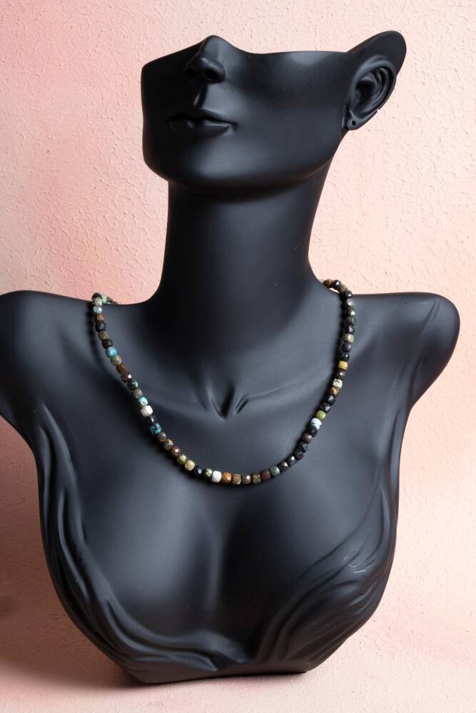 Afrika Turkuazı Doğal Taş Kolye Değişimi kucaklayın, doğanın kadim bilgeliğini boynunuzda taşıyın! Aslında bir tür jasper olan ancak eşsiz desenleri nedeniyle 'Afrika Turkuazı' olarak anılan bu özel taş, 'Gelişim ve Değişim Taşı' olarak bilinir. Üzerindeki siyah, kahverengi ve yeşilimsi lekelerle bir dünya haritasını andıran bu kolye, hayat yolculuğunuzda size eşlik edecek güçlü bir semboldür. Afrika Turkuazı: Dönüşümün ve Farkındalığın Enerjisi Değişim ve Gelişim: Bu taşın, kişiyi durağanlıktan kurtardığına ve yeni ufuklara açılma cesareti verdiğine inanılır. Hayatınızda büyük değişimler yaparken size gereken kararlılığı aşılar. Zihinsel Berraklık: Karmaşık düşünceleri netleştirmeye ve hayata daha geniş bir perspektiften bakmaya yardımcı olur. Ruhsal bir dengeleyici olarak bilinir. Doğanın İmzası: Klasik turkuazın aksine daha toprak tonlarında ve mat bir yapıya sahip olması, onu doğallığı sevenler için benzersiz bir seçim haline getirir. Tasarım ve Malzeme Özellikleri Eşsiz Desenler: Her bir Afrika Turkuazı taşı, doğada milyonlarca yılda oluşmuş kendine has bir 'parmak izine' sahiptir. Bu yüzden kolyeniz sadece size özeldir. Toprak Tonlarının Uyumu: Yeşilin, mavinin ve kahverenginin en doğal tonlarını barındıran bu taş; keten kumaşlar, örgü dokular ve doğal renklerle muazzam bir uyum yakalar. Dayanıklı ve Güçlü: Yapısı gereği oldukça sert ve dayanıklı olan bu taş, uzun yıllar boyunca formunu ve enerjisini korur. Ergonomik Tasarım: Günlük temponuzda size eşlik edecek kadar hafif, stilinizi tamamlayacak kadar dikkat çekici bir tasarıma sahiptir. Neden Bu Kolyeyi Seçmelisiniz? Yeni Başlangıçlar İçin: Hayatınızda yeni bir sayfa açıyor, iş değiştiriyor veya yeni bir hobiye başlıyorsanız, bu kolye sizin motivasyon kaynağınız olacak. Bohem ve Modern Şıklık: Doğal ve çabasız bir şıklık arayanlar için hem günlük hem de özel kombinlerin vazgeçilmez parçasıdır. Anlamlı Bir Motivasyon Hediyesi: Sevdiklerinize 'potansiyelini keşfet' ve 'değişimden korkma' mesajı vermenin en kalıcı ve şık yolu.