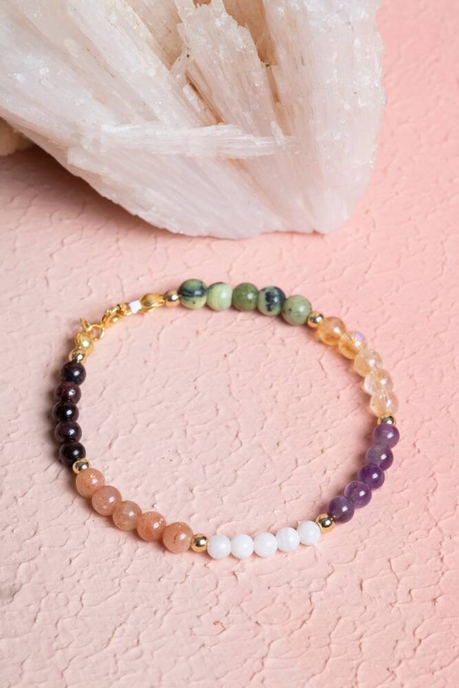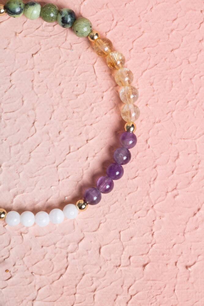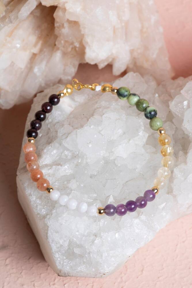 %100 doğal ve sertifikalı taşlarla hazırlanmış bu bileklik, kadınlara özel zarif tasarımıyla hem ruhsal destek sunar hem de günlük stilinize şıklık katar.