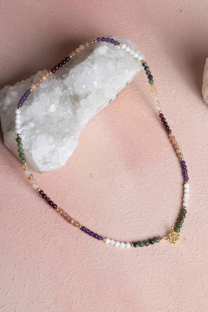 Akrep Burcuna Özel Enerji Kolyesi: Tutku, Dönüşüm ve İçsel Güç Tutku, dönüşüm ve içsel güç… Akrep burcunun derin, kararlı ve sezgisel enerjisini kalbinize yakın taşıyın. Bu özel 4mm doğal taş kolye, Akrep burcunun güçlü iradesini, dönüşüm yeteneğini ve duygusal derinliğini destekleyen özenle seçilmiş doğal taşlarla tasarlandı. 4mm'lik narin küreler, kolyeye minimalist ama derin anlamlı bir hava katıyor. Kolyedeki Güçlü Taşlar ve Anlamları: Yeşim – Huzur, bolluk ve uyum enerjisini hayatınıza çeker. Sitrin – Bolluk, başarı ve pozitif enerji verir. Ametist – Zihni sakinleştirir, ruhsal koruma ve netlik sağlar. Ay Taşı – Sezgiyi güçlendirir, duygusal denge ve içsel rehberlik sunar. Güneş Taşı – Canlılık, özgüven ve motivasyon enerjisi katar. Lal – Tutku, kararlılık ve yaşam gücünü artırır. Bu altı taşın uyumu, Akrep burcunun güçlü, sezgisel ve dönüştürücü doğasını dengeli ve zarif bir şekilde yansıtır. 4mm Kolye için Öne Çıkan Özellikler: Sertifikalı Yeşim, Sitrin, Ametist, Ay Taşı, Güneş Taşı ve Lal taşları. Akrep burcuna özel enerji: Tutku, dönüşüm, sezgi, bolluk ve içsel güç. Zarif 4mm Boyut: Doğal taşların enerjisini taşıyan, günlük kullanım için ideal, minimalist ve narin tasarım. Feminen ve Güçlü Görünüm: Hem enerjisel denge sunar hem de günlük stilinize sofistike bir dokunuş katar. Kalbe Yakın Enerji: Sezgi ve duygusal dönüşümü destekleyen taşları boynunuzda taşıyarak ruhsal derinlik sağlayın. Bu kolye; sadece bir aksesuar değil, aynı zamanda Akrep burcunun tutkulu, derin ve kararlı doğasını taşıyan, kalbinize ve ruhunuza dokunan özel bir parçadır.