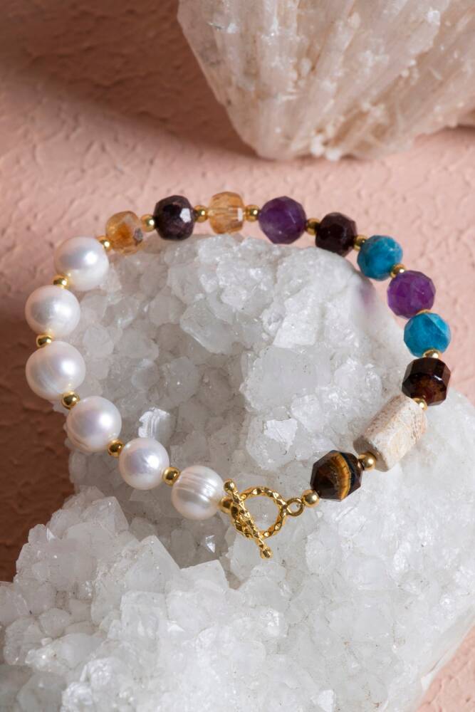 Akrep Burcu Gümüş Kapama Doğal Taş Bileklik Tutku, dönüşüm ve sarsılmaz içsel gücün kristallerle buluşması. Zodyak’ın en gizemli, kararlı ve sezgisel gücü yüksek burcu olan Akrep için özel olarak seçilen; İnci, Kaplan Gözü, Fosil Mercan, Apatit, Ametist, Sitrin ve Lal taşları 925 ayar gümüş kapamanın asil dokunuşuyla birleşti. Bu bileklik, Akrep burcunun derin duygusal dünyasını dengelemek ve küllerinden yeniden doğma enerjisini desteklemek için tasarlandı. Akrep Burcu’nun Derin ve Güçlü Taşları Kaplan Gözü (Odaklanma ve Koruma): Akrep burcunun keskin bakış açısını ve kararlılığını pekiştirir. Negatif enerjilere karşı güçlü bir kalkan oluştururken, kişisel gücü artırır. Lal (Garnet) (Tutku ve Canlılık): Akrep’in yönetici gezegeni Mars ile uyumlu olan bu taş, yaşam enerjisini yükseltir. Duygusal yoğunluğu özgün bir güce dönüştürür. Apatit (İlham ve Netlik): Sezgisel Akrep burcunun zihinsel karmaşasını giderir. İletişimi güçlendirir ve hedeflere ulaşırken ihtiyaç duyulan motivasyonu sağlar. Ametist (Arınma ve Spiritüel Güç): Akrep’in bazen yorucu olabilen duygusal derinliğini sakinleştirir. Zihni negatif düşüncelerden arındırarak huzurlu bir bakış açısı sunar. Sitrin (Bolluk ve Neşe): Akrep burcunun ciddi ve derin yapısına güneşin sıcaklığını taşır. Pozitif enerjiyi çeker, özgüveni destekler ve başarı enerjisini tetikler. Fosil Mercan (Köklenme ve Bilgelik): Geçmişten gelen deneyimleri bilgeliğe dönüştürmeye yardımcı olur. Akrep burcuna değişim süreçlerinde ihtiyaç duyduğu sabrı ve dayanıklılığı verir. İnci (Duygusal Denge ve Zarafet): Su grubu olan Akrep burcuna asalet katar. Duygusal dalgalanmaları yumuşatır ve içsel bir dinginlik sağlar. Tasarım ve Malzeme Özellikleri 925 Ayar Gümüş Kapama: Taşların derin ve karakteristik renklerini vurgulayan, dayanıklı ve şık gümüş detaylar kullanılmıştır. Özel Seçilmiş Kristaller: Akrep burcunun 'hep ya da hiç' diyen güçlü karakterine uygun, yüksek enerjiye sahip orijinal doğal taşlar. Karizmatik Renk Paleti: Lal taşının koyu kırmızısı ve kaplan gözünün altın tonları, apatitin derin mavisiyle birleşerek Akrep burcuna yakışan gizemli bir görünüm sunar. Neden Bu Bilekliği Seçmelisiniz? Dönüşüm Enerjinizi Destekleyin: Hayatınızdaki değişim süreçlerini daha güçlü ve dengeli bir şekilde yönetmek için bu taşların frekansından yararlanın. Sezgilerinizi Korumaya Alın: Yüksek algılama gücünüzü Ametist ve Kaplan Gözü ile koruyarak sadece kendi enerjinize odaklanın. Etkileyici Bir Akrep Hediyesi: Gizeme ve kaliteye önem veren Akrep burcu sevdikleriniz için onların derinliğini onurlandıracak bir seçim.