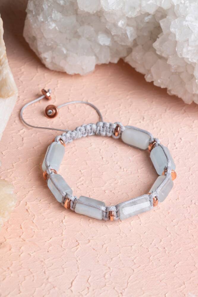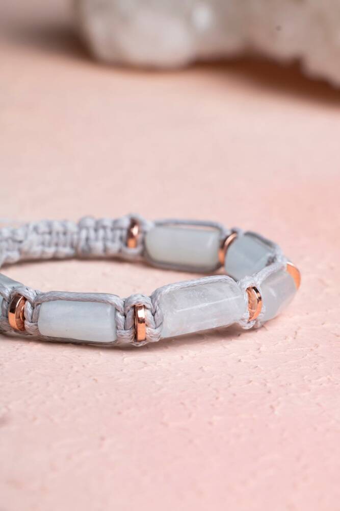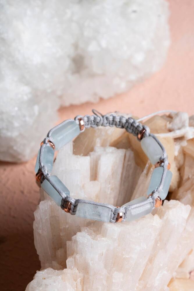 Akuamarin’in dingin enerjisi ile Hematit’in koruyucu gücü, kadınlara özel zarif bir makrome bileklikte buluşuyor. El işçiliğiyle hazırlanan bu özel tasarım, %100 doğal ve sertifikalı taşlarla hem ruhunuza sakinlik katar hem de günlük stilinize şıklık ekler.