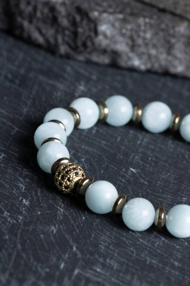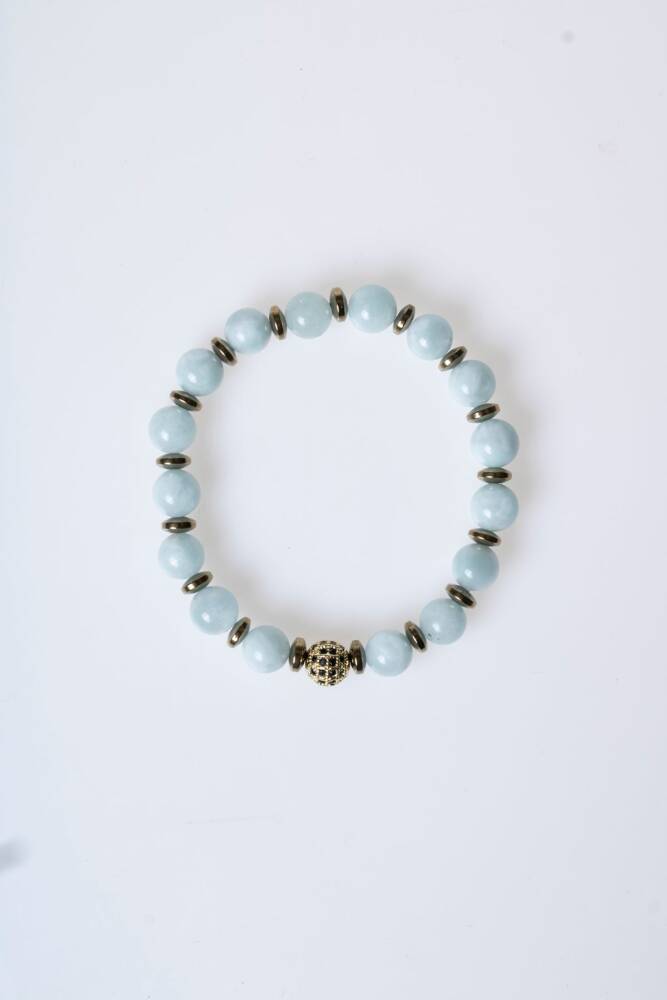 Akuamarin ve Hematit Zirkon Aparatlı Doğal Taş Bileklik