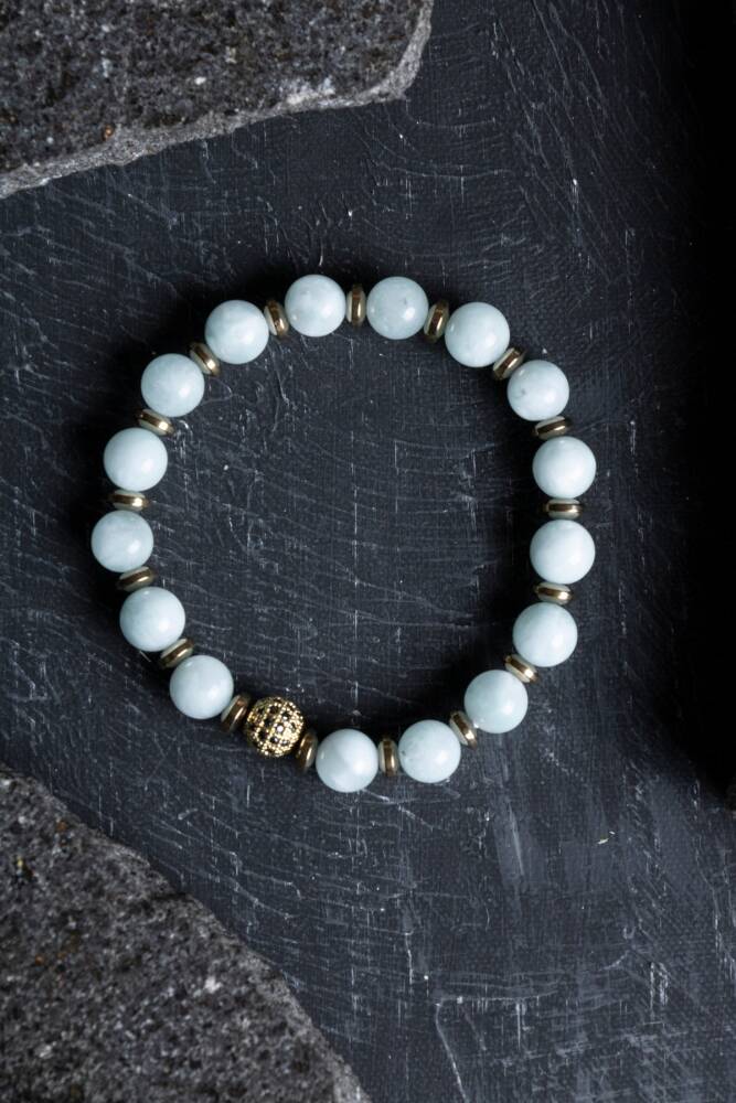 Denizlerin dinginliğini fısıldayan Akuamarin ile topraklanmanın ve dayanıklılığın simgesi Hematit, göz alıcı Zirkon detaylarla bu özel tasarımda bir araya geldi. Bu bileklik; bir yandan ruhunuza ferahlık ve dinginlik verirken, diğer yandan sizi dış dünyanın karmaşasına karşı güçlü ve dengede tutan bir enerji kalkanı sunar.