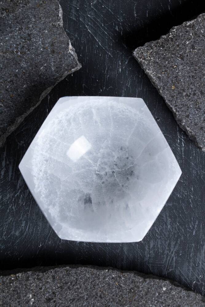 Modern ve Şık Estetik: Altıgenin keskin ve net hatları, Selenit'in yarı saydam ışıltısıyla birleştiğinde, çağdaş, minimalist ve şık bir estetik sunar.