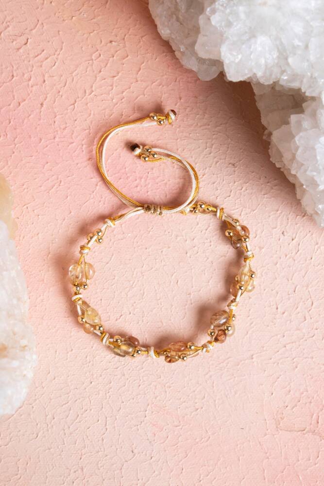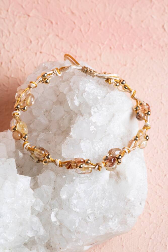 Enerji yükseltme, aydınlanma ve güçlü topraklanmayı bileğinizde birleştirin. Altın Rutilli Kuvars'ın aydınlatıcı etkisi ve Hematit'in sağlamlığı, dayanıklı Makrome Örgü ile birleşerek bu özel bilekliği oluşturuyor. Bu bileklik, size sürekli yüksek enerji, koruma ve zihinsel netlik sağlayan dinamik bir destekçinizdir.