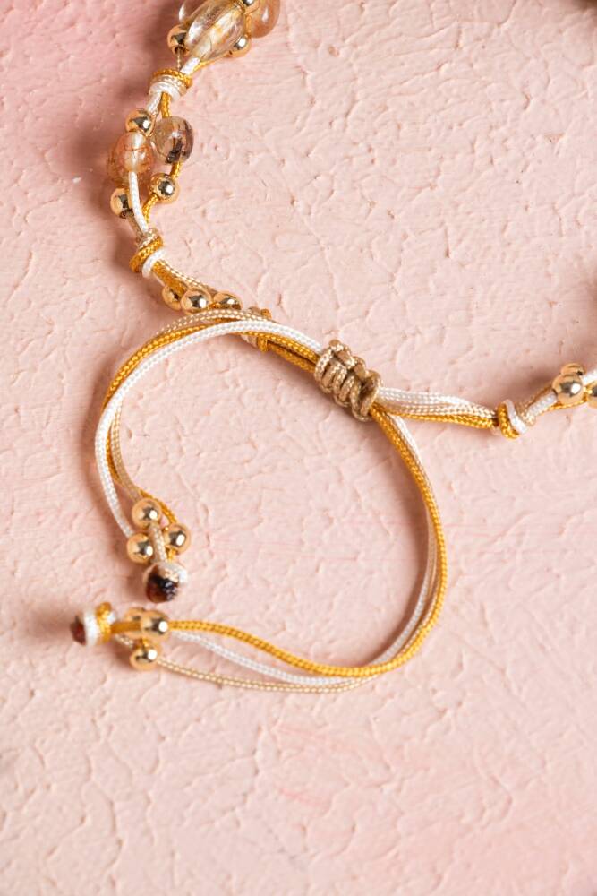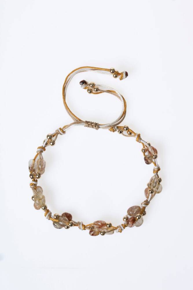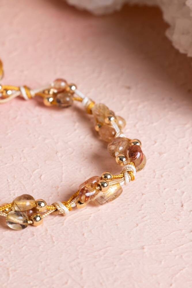 Altın Rutilli Kuvars, Hematit Doğal Taş Makrome Bileklik