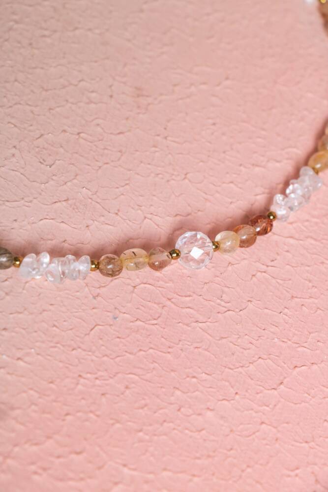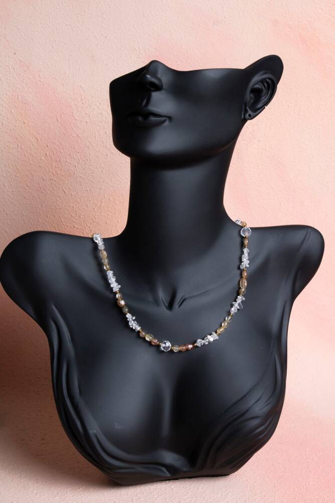 Altın Rutili Kuvars, Kuvars, Hematit Doğal Taş Kolye Enerji yükseltme, arınma ve topraklanma gücünü tek bir özel tasarımda birleştirin. Altın Rutili Kuvars'ın aydınlatıcı etkisi, Kuvars'ın berraklığı ve Hematit'in sağlamlığı, bu kolyede ahenkle buluşuyor. Bu kolye, sadece estetik bir aksesuar değil, aynı zamanda size zihinsel netlik, yüksek enerji ve güçlü koruma sağlayan dinamik bir enerji kaynağıdır. Üç Güçlü Taşın Mistik Sinerjisi Altın Rutili Kuvars (Aydınlanma ve Hızlandırma): İçindeki altın renkli rutil iplikçikleri sayesinde enerjiyi yükseltir ve hızlandırır. Ruhsal gelişimi, sezgileri ve yaratıcılığı destekler. Kuvars (Enerji Yükseltme ve Arındırma): 'Usta Şifacı' olarak bilinir. Enerjiyi büyütür, arındırır ve diğer taşların etkisini güçlendirir. Zihinsel netliği sağlar. Hematit (Topraklanma ve Koruma): En etkili topraklanma taşlarındandır. Enerjinizi köklendirir, dengeyi artırır ve negatif enerjiyi nötralize ederek güçlü bir koruma kalkanı oluşturur. Enerji Kombinasyonu: Bu üçlü, yüksek enerjiyi (Rutili Kuvars), arınmayı (Kuvars) ve fiziksel sağlamlığı/korumayı (Hematit) birleştirerek sizi hem ruhsal hem de fiziksel olarak destekleyen dinamik bir akış sunar. Özel Tasarımın Gücü Kolyedeki taşların farklı doku ve renkleri (rutilin parlaklığı, kuvarsın berraklığı, hematitin metalikliği), organik ve sofistike bir estetik yaratır. Bu özel kombinasyon, günlük kullanımınızda size eşlik ederken enerjinizi sürekli olarak yüksek tutar ve dengeler.