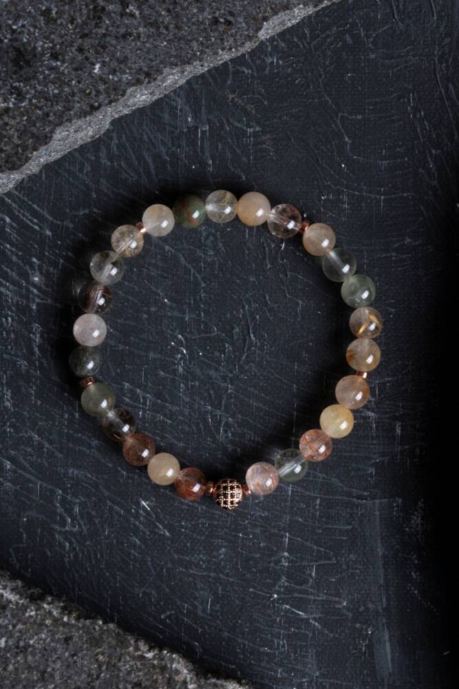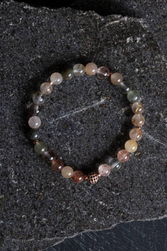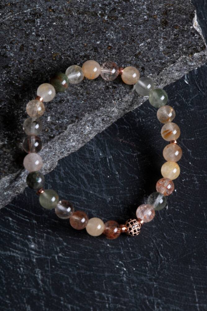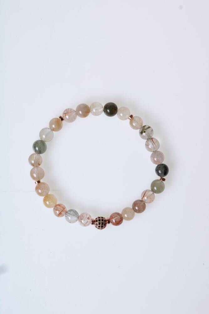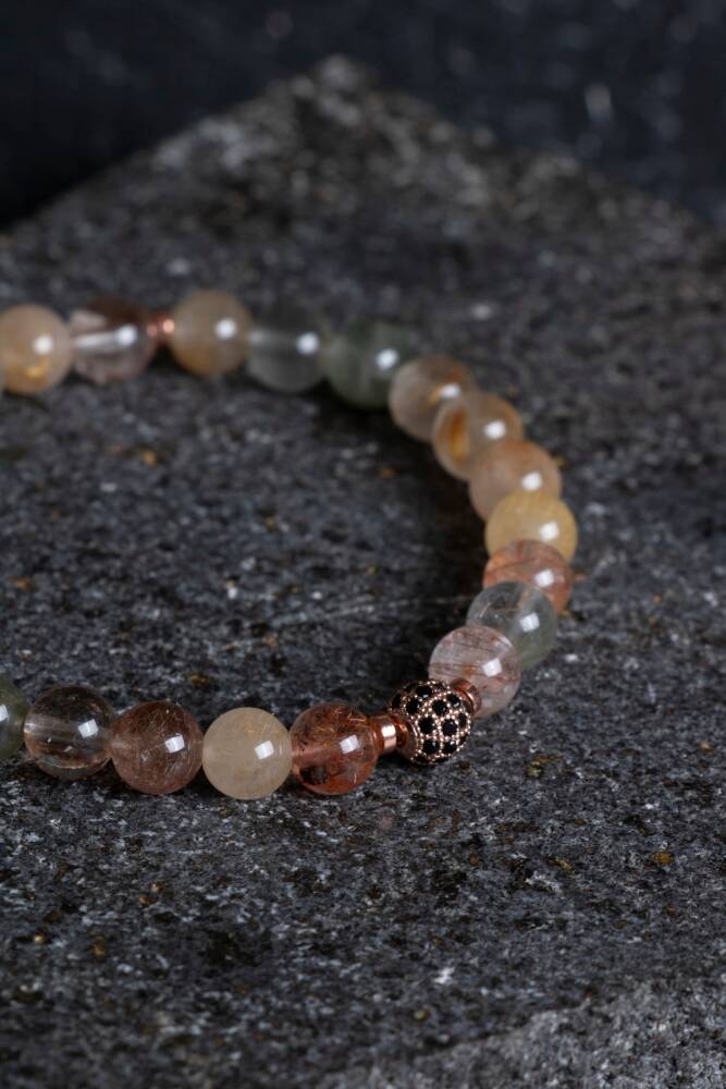Altın Rutilli Kuvars Zirkon Aparatlı Doğal Taş Bileklik (8mm)