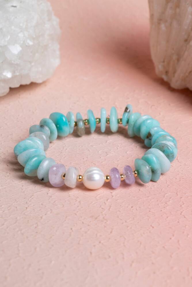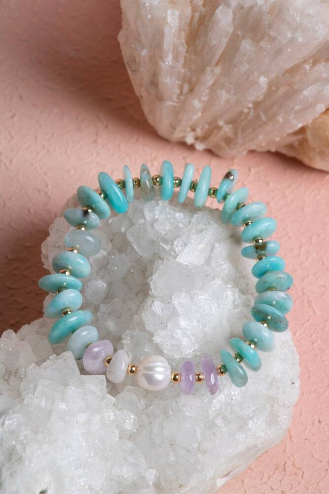 Amazonit, İnci, Ametist ve Hematit Doğal Taş Bileklik (Misinalı) Doğanın en huzurlu renkleriyle ruhsal denge ve estetik bir arada. Huzur veren Amazonit, zarafetin simgesi İnci, zihni berraklaştıran Ametist ve topraklayıcı gücüyle Hematit, bu özel tasarımda birleşiyor. Yüksek kaliteli esnek misina üzerine dizilen bu bileklik, hem günlük yaşamın stresine karşı bir kalkan oluşturur hem de her tarza uyum sağlayan yumuşak bir renk paleti sunar. Bu Dörtlü Karışımın Enerji Rehberi Amazonit (Umut ve İletişim): 'Umut Taşı' olarak bilinir. Kalp ve boğaz çakrasını dengeleyerek duyguların nazikçe ifade edilmesini sağlar. Rahatlatıcı su yeşili tonlarıyla gerginliği azaltır. İnci (Zarafet ve Dişil Enerji): Safiyeti ve içsel bilgeliği temsil eder. Sakinleştirici etkisiyle ruhu dinlendirir ve tasarıma asil, sedefli bir ışık katar. Ametist (Huzur ve Odaklanma): Güçlü bir arındırıcıdır. Zihni gereksiz düşüncelerden temizler, stresi uzaklaştırır ve sezgisel farkındalığı artırır. Hematit (Denge ve Koruma): Metalik gri parlaklığıyla bedendeki statik elektriği atmaya yardımcı olur. Diğer taşların enerjisini stabilize eder ve kişiye dayanıklılık ve öz disiplin verir. Tasarım ve Kullanım Özellikleri Renk Harmonisi: Amazonit'in ferah yeşili, Ametist'in mistik moru, İnci'nin beyazı ve Hematit'in çelik grisi, doğanın en dengeli ve şık kombinasyonlarından birini oluşturur. Esnek Kristal Misina: Yüksek kopma direncine sahip profesyonel takı misinası kullanılmıştır. Takıp çıkarması son derece kolaydır ve bileği yormaz. A Kalite Taşlar: Formu ve parlaklığı özenle seçilmiş taşlar, pürüzsüz yüzeyleri sayesinde cildinizde konforlu bir his bırakır. Çok Yönlü Stil: Pastel ve metalik tonların bu eşsiz birleşimi, hem spor kıyafetlerle hem de şık elbiselerle 'imza parça' olarak kullanılabilir. Neden Bu Bilekliği Tercih Etmelisiniz? Duygusal ve Fiziksel Denge: Gün içindeki karmaşada hem sakinleşmek hem de enerjinizi topraklamak için bu taşların sinerjisinden faydalanabilirsiniz. Huzurlu Bir Işıltı: İncilerin ve ametistlerin doğal parıltısı, bileğinizde her zaman fark edilen ama göz yormayan bir şıklık yaratır. Anlamlı Bir Seçim: Umut, huzur ve koruma temalarını bir arada sunan bu bileklik, hem kendiniz hem de sevdikleriniz için harika bir enerji kaynağıdır.