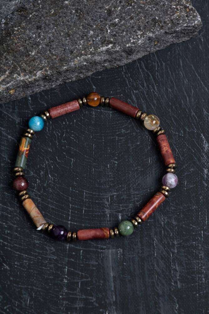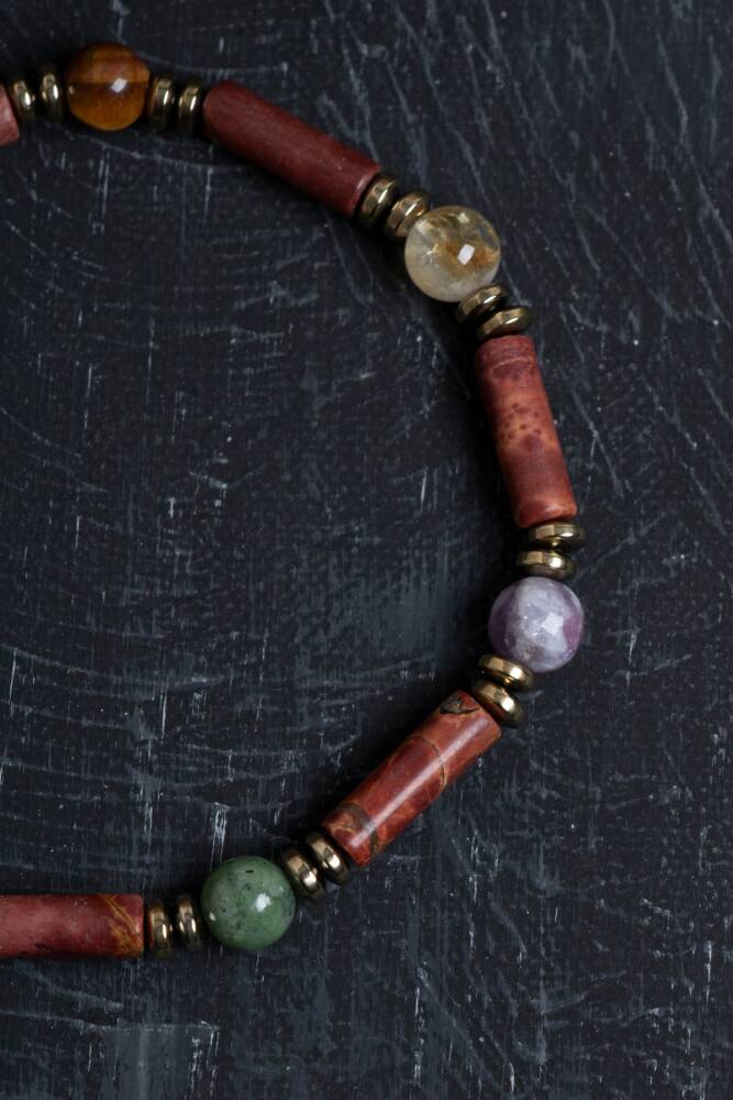 Ruhsal denge, şefkat ve sezgi gücünü destekleyen bu doğal taş bileklik, ametist, pembe kuvars ve ay taşı ile tasarlanmıştır. Parlak pembe ipi ve rose gold ara parçaları sayesinde hem enerjik hem de şık bir duruş sunar.