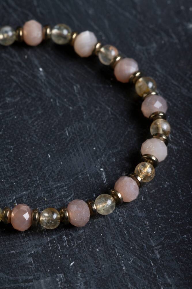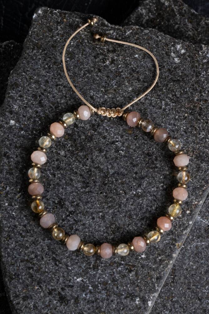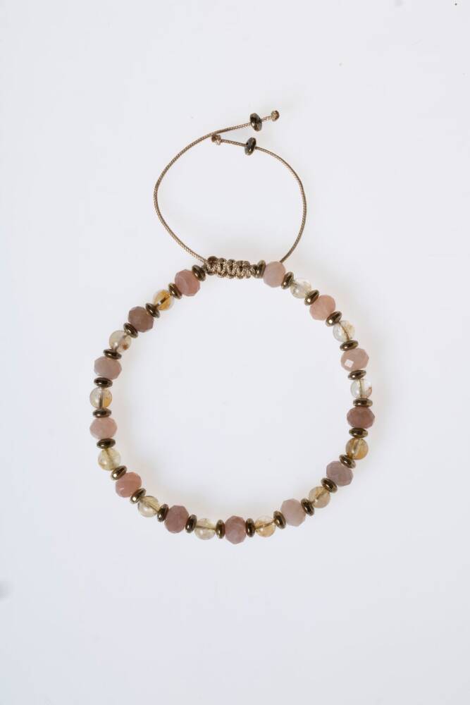 Güneş Taşı, Sitrin ve Hematit Doğal Taş Makrome Bileklik