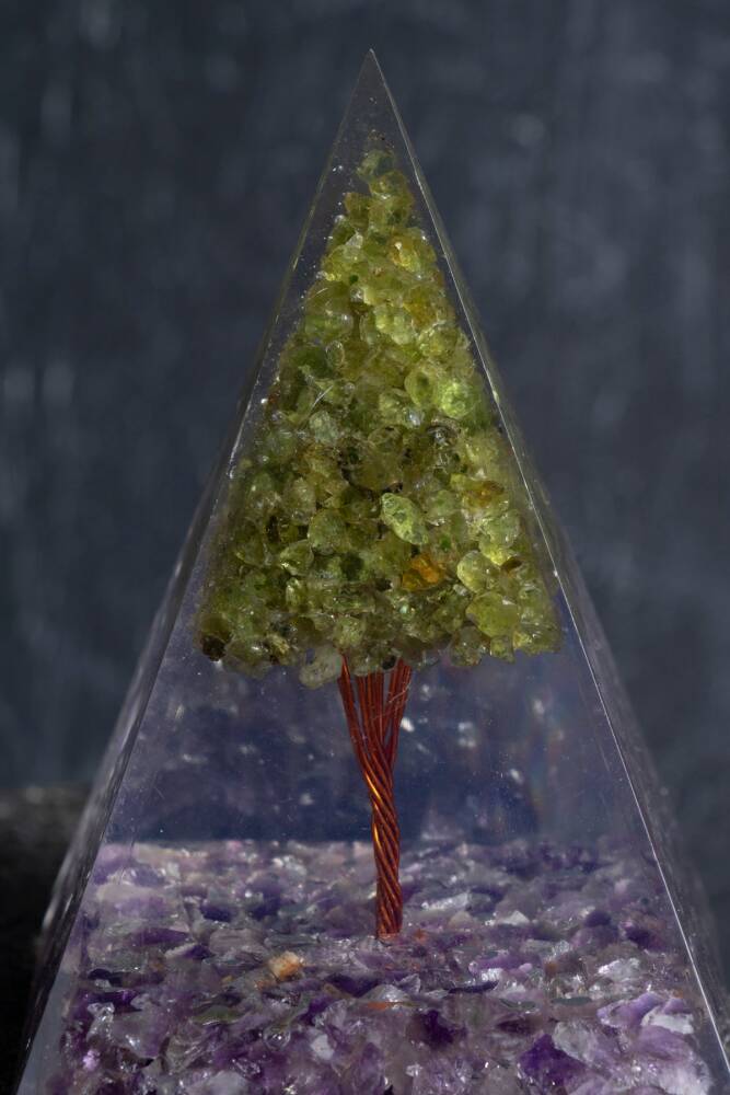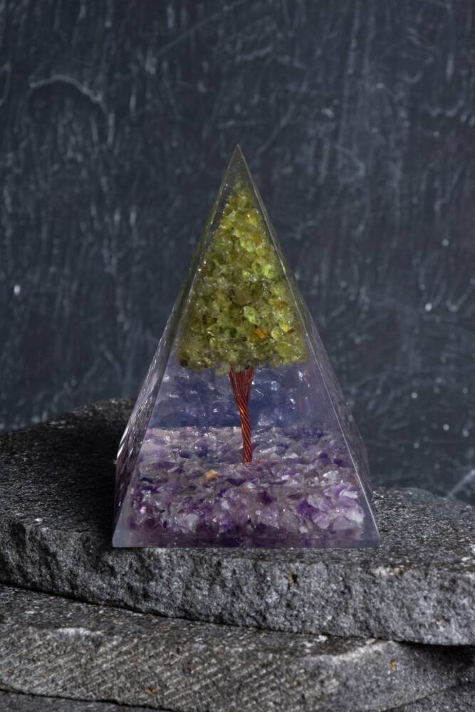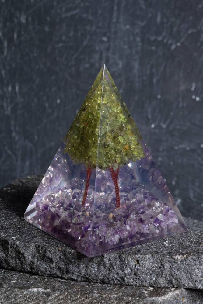 - Doğanın özünü yansıtan Ametist & Zebercet ağaçlı piramit, doğa temalı dekorasyonunuzu tamamlar. - Tek parça halinde sunulan bu şık aksesuar, minimal ve sade bir görünüm sağlar. - Doğal taş materyali ile üretilmiş olup, her bir parçası benzersiz bir dokunuş sunar. - Türkiye menşeli olmasıyla yerel üretim ve kaliteyi bir arada sunar.