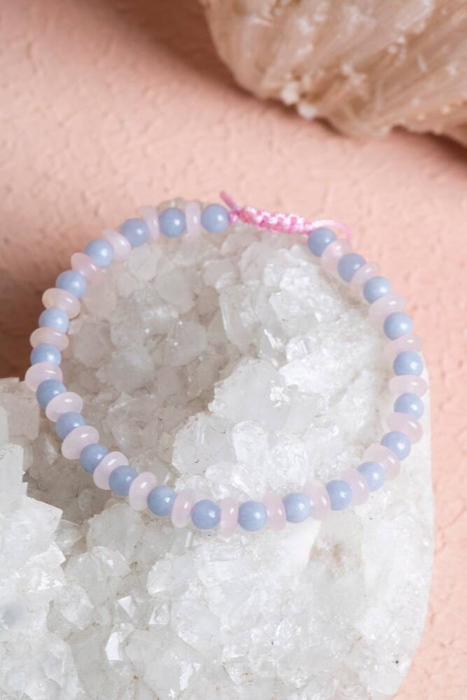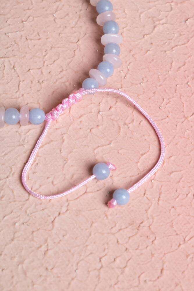 Anjelit ve Pembe Kuvars Doğal Taş Makrome Bileklik Meleklerin huzuru ve kalbin sonsuz sevgisi bileğinizde. Huzur ve ruhsal iletişim taşı Anjelit ile koşulsuz sevginin sembolü Pembe Kuvars, bu tasarımda el emeği makrome işçiliğiyle bir araya geliyor. Ayarlanabilir asansörlü yapısı ve nazik renk tonlarıyla bu bileklik, hem ruhunuzu dinlendiren bir enerji yayar hem de zarafetinizi tamamlar. Bu İkilinin Enerji Rehberi Anjelit (Melek Taşı / Ruhsal Huzur): İsmini göksel enerjisinden alan Anjelit, yüksek bir farkındalık ve içsel dinginlik taşıdır. Stresi yatıştırır, öfkeyi dindirir ve kişinin kendisini daha şefkatli bir dille ifade etmesine yardımcı olur. Ruhsal bir koruma ve rehberlik enerjisi sunduğuna inanılır. Pembe Kuvars (Aşk ve Öz Şefkat): Kalp çakrasının temel taşıdır. Çevrenize sevgi enerjisi yaymanızı sağlarken, en başta kendinizi olduğunuz gibi kabul etmeniz için gereken şefkati verir. Duygusal yaraların sarılmasında ve içsel barışın sağlanmasında en güçlü yardımcıdır. Sinerjik Etki: Anjelit'in sakinleştirici mavi enerjisi ile Pembe Kuvars'ın sevgi dolu pembe frekansı birleştiğinde, tam bir 'duygusal detoks' etkisi yaratır. Kendinizi güvende, huzurlu ve sevilmeye değer hissetmenizi destekler. Tasarım ve İşçilik Özellikleri A Kalite Taşlar: Anjelit'in buğulu gök mavisi ile Pembe Kuvars'ın pastel pembe dokusu, gökyüzü ve gün batımının huzur veren renk uyumunu sunar. El İşçiliği Makrome: Suya ve günlük kullanıma dayanıklı, kaliteli paraşüt ipi ile titizlikle örülmüştür. Uzun ömürlüdür, zamanla formunu kaybetmez. Asansörlü (Ayarlanabilir) Kilit: Kilit mekanizması sayesinde bilekliğin boyunu kendinize göre daraltıp genişletebilirsiniz. Her bilek ölçüsü için uygundur. Hafif ve Konforlu: Metal içermeyen yapısıyla alerji yapmaz ve gün boyu bileğinizde ağırlık hissettirmeden kullanılabilir. Neden Bu Bilekliği Tercih Etmelisiniz? İçsel Dinginlik: Zihninizin çok dolu olduğu veya kendinizi gergin hissettiğiniz dönemlerde, bu iki taşın yatıştırıcı frekansından faydalanabilirsiniz. Zarif ve Naif Stil: Soft renk tonları sayesinde özellikle beyaz, gri ve pastel tonlardaki kıyafetlerinizle kusursuz bir uyum yakalar. Anlamlı Bir Hediye: Sevdiklerinize 'huzur ve sevgi' dilemenin en zarif yoludur.