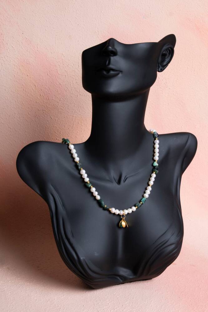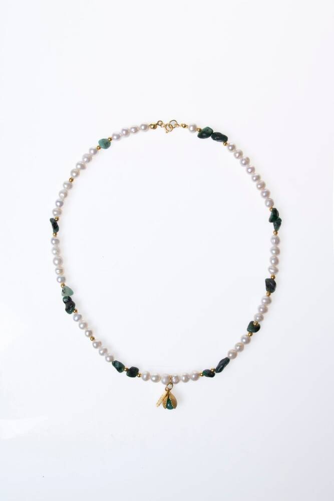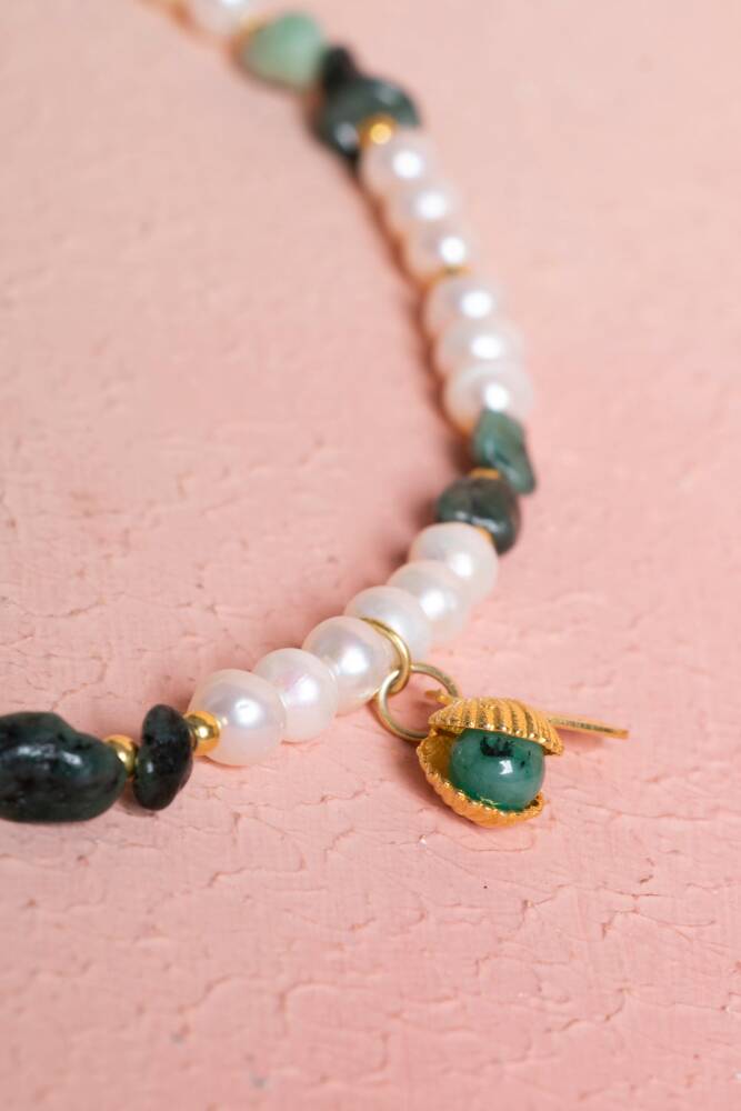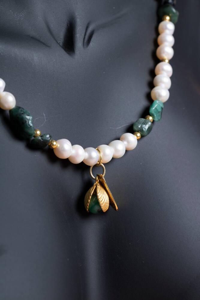 Aşk Kolyesi: İnci, Zümrüt Gümüş Aparatlı Doğal Taş Kolye