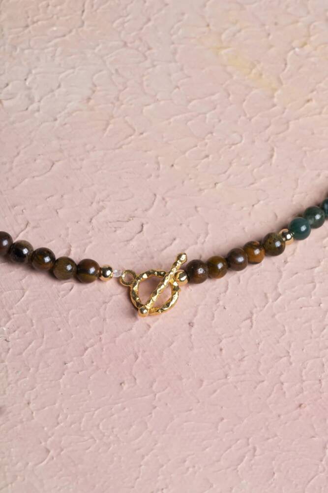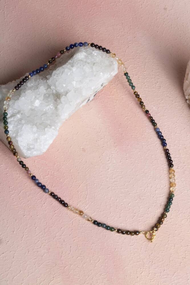 Aslan Burcuna Özel Enerji Kolyesi: Güç, Karizma ve Özgüven Güç, karizma ve özgüven... Aslan burcunun lider ruhunu ve parlak enerjisini kalbinize yakın taşıyın. Bu özel 4mm doğal taş kolye, Aslan burcunun cesur, özgün, neşeli ve koruyucu doğasını destekleyen özenle seçilmiş doğal taşlarla tasarlandı. 4mm'lik minik ve zarif küreler, kolyeye sade ama güçlü bir hava katıyor. Kolyedeki Güçlü Taşlar ve Anlamları: Turmalin – Negatif enerjiyi arındırır, koruma ve denge sağlar. Lapis Lazuli – Zihinsel berraklık, bilgelik ve güçlü iletişim enerjisi verir. Sitrin – Bolluk, başarı ve pozitif enerjiyi hayatınıza çeker. Kan Taşı – Güç, dayanıklılık ve yaşam enerjisini artırır. Kaplan Gözü – Cesaret, özgüven ve güçlü odaklanma sağlar. Bu beş taşın uyumu, Aslan burcunun yüksek enerjisini, liderlik yeteneğini ve yaşam coşkusunu dengeli ve zarif bir şekilde yansıtır. 4mm Kolye için Öne Çıkan Özellikler: Sertifikalı Turmalin, Lapis Lazuli, Sitrin, Kan Taşı ve Kaplan Gözü taşları. Aslan burcuna özel enerji: Özgüven, bolluk, koruma, güç ve zihinsel netlik. Zarif 4mm Boyut: Doğal taşların enerjisini taşıyan, günlük kullanım için ideal, minimalist ve narin tasarım. Feminen ve Güçlü Görünüm: Hem enerjisel denge sunar hem de günlük stilinize sofistike bir dokunuş katar. Kalbe Yakın Enerji: Liderlik ve özgüveni destekleyen taşları boynunuzda taşıyarak ruhsal destek sağlayın. Bu kolye; sadece bir aksesuar değil, aynı zamanda Aslan burcunun karizmatik, cesur ve ışık saçan doğasını taşıyan, kalbinize ve ruhunuza dokunan özel bir parçadır.