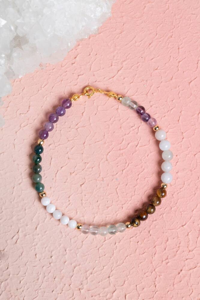 %100 doğal ve sertifikalı taşlarla hazırlanmış bu bileklik, kadınlara özel zarif tasarımıyla hem ruhsal destek sunar hem de günlük stilinize şıklık katar.